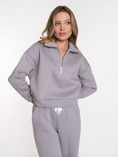 Женская укороченная толстовка oversize выполнена из мягкого трикотажного полотна "силаник". Модель с капюшоном на шнуре, спущенной линией плеча и длинными рукавами на резинке. Спереди — удобные карманы. Пояс также на резине. Застежка на молнию делает изделие практичным и удобным в носке.