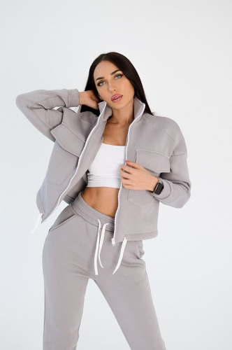 Тёплая, модная женская толстовка выполнена из полотна с начёсом (футер трёхнитка). Воротник-стойка, длинные рукава заканчиваются манжетами из основного полотна, на левом рукаве размещена вышивка. Толстовка застёгивается на молнию, спереди в верхней части размещены карманы с клапанами. Такая толстовка подойдёт для создания стильных и комфортных образов на каждый день.