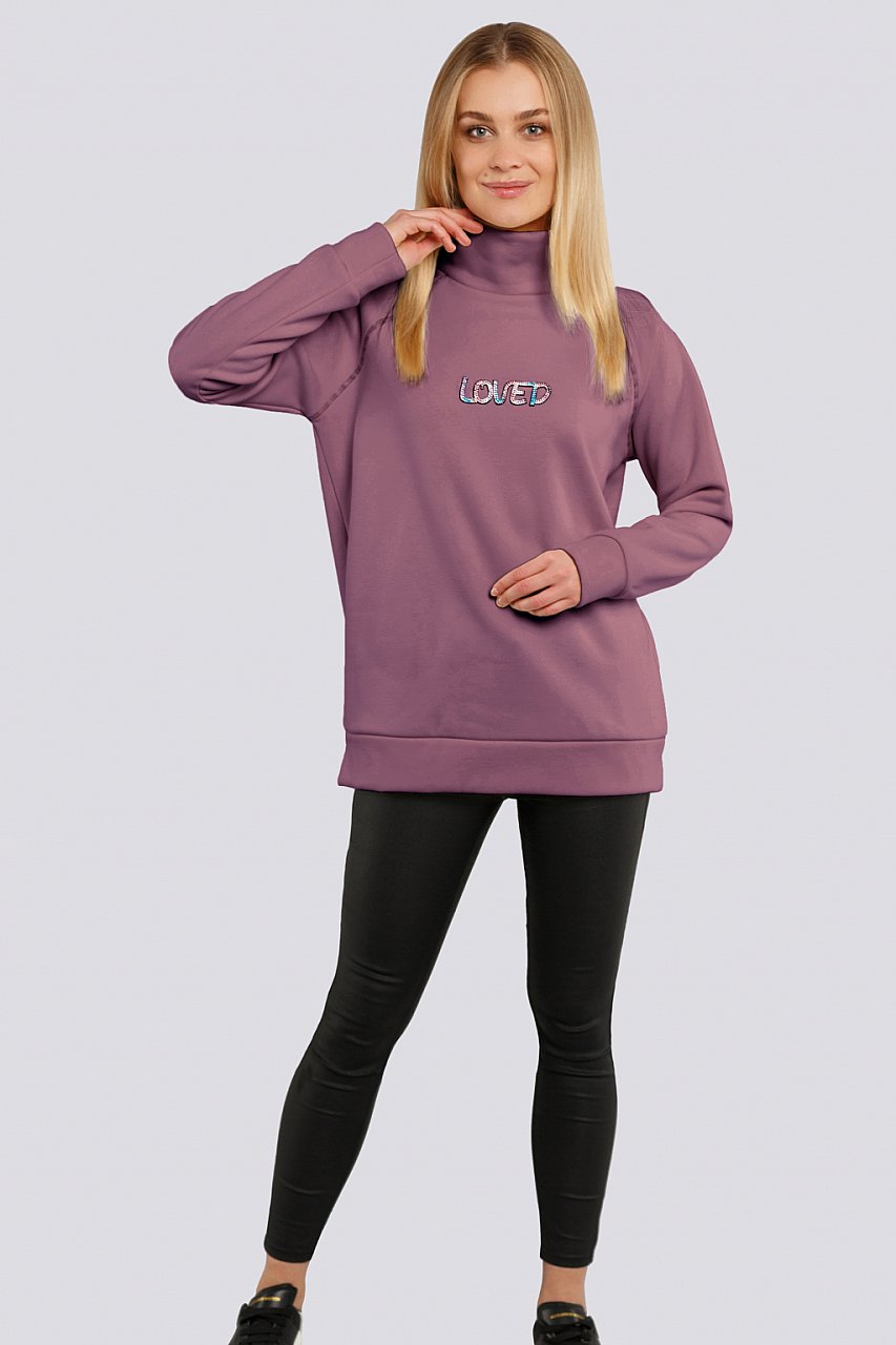 Стильные и изысканные свитшоты представляют собой вид толстовки без молнии и без капюшона, свободного кроя и классической длиной, что делает их очень удобными и комфортными для многих девушек. Свитшот украшен надписью из страз и переливающейся цветной нитью , проложенной по пройме рукава-реглан. Состав трикотажа: 75% хлопок, 20% полиэстер, 5% спандекс. лиловый