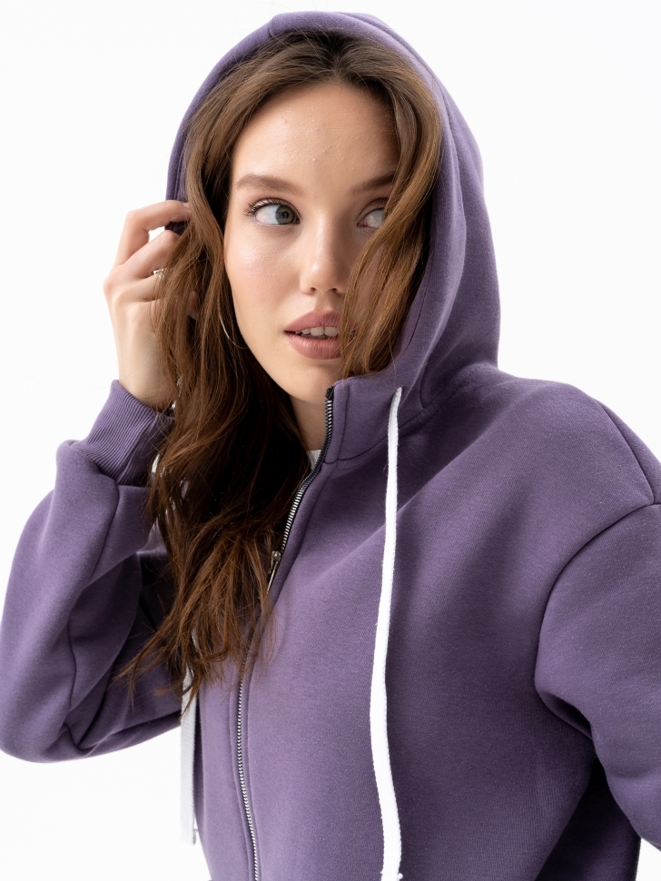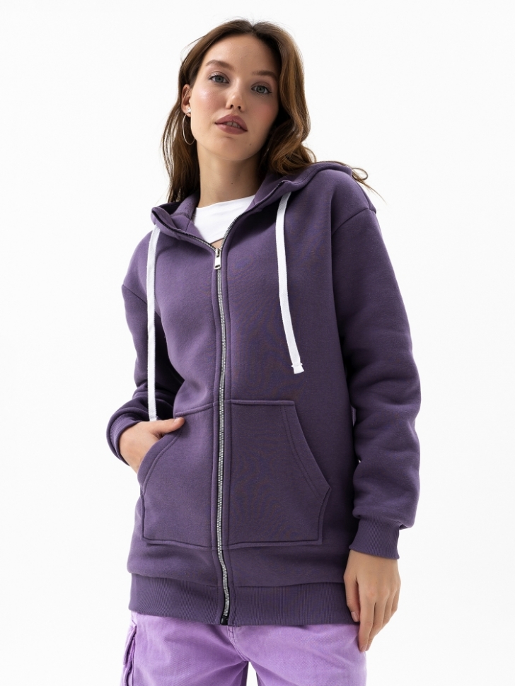Удлиненная женская толстовка свободного силуэта с центральной застежкой «молния - трактор». Объемный капюшон с люверсами регулируется широким шнуром. На полочке размещены карманы-кенгуру. Широкая планка по низу изделия обеспечивает хорошее прилегание по фигуре. Футер, из которого пошито изделие - это гладкий снаружи, а изнутри мягкий и теплый трикотаж. Добавление полиэстера к хлопковому волокну сохранит яркость и износостойкость материала. Прослойки воздуха изнанки с начесом создают своеобразные тепловые ловушки, что не допустит возможного быстрого переохлаждения организма в холодное время года. Трикотажное полотно Турецкого производства не потеряет яркость цвета даже после множества стирок. Качество пошива изделия соответствует требованиям Госстандарта РФ. Этикетка промаркирована штрих кодами EAN 13. Рост модели на фото 175 см. Параметры модели: 84-60-92. Размер изделия на модели: 44. Материал: футер 3х нитка с начесом (хлопок 80%, п/э 20%)