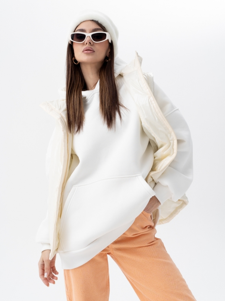 Толстовка свободного силуэта с карманом - кенгуру и капюшоном. Рукава на манжетах, низкая линия плечевого шва, цельный притачной пояс по низу изделия. Толстовка – всесезонная вещь, которая бывает востребованной на протяжении всего года. С толстовкой легко можно составить удобный комплект, как в спортивном, так и в повседневном кэжуал стиле. Лицевая сторона толстовки очень плотная, мягкая и гладкая, не мнется и не вытягивается. Зимой Вы оцените густой начес изнанки, который создаёт своеобразные тепловые ловушки, что не допускает возможное быстрого переохлаждения организма в холодную погоду. Трикотажное полотно Турецкого производства включает полиэстер, хорошо пропускает воздух и сохраняет цвет даже после множества стирок. Капюшон можно всегда эффектно вытащить поверх воротника верхней одежды. Параметры Юли: 80-61-87. Рост модели на фото: 170 см. Размер изделия на модели: 46. Параметры Артема: 98-68-95. Рост модели на фото: 180 см. Размер изделия на модели: 50. Материал: футер 3х нитка с начесом (хлопок
