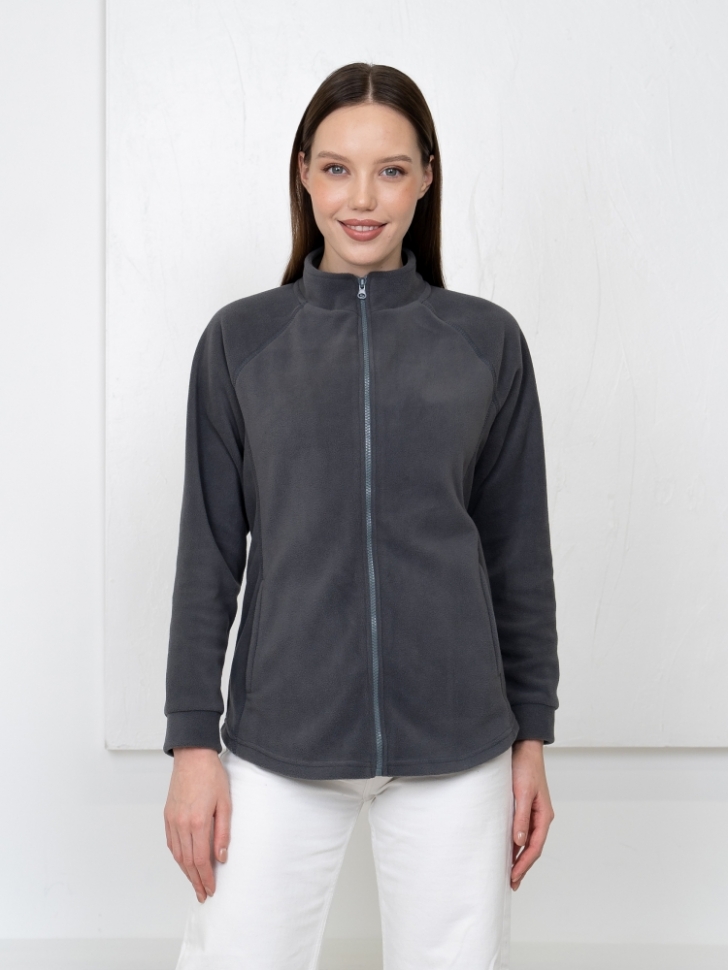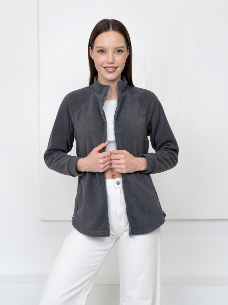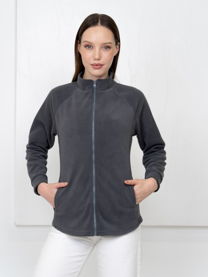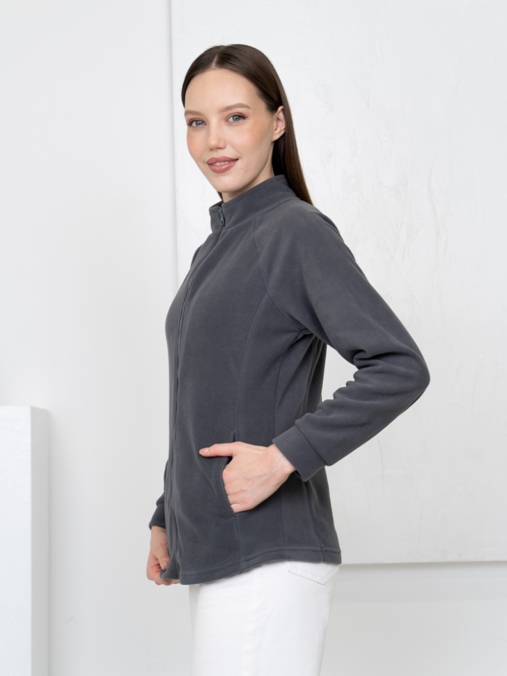 Толстовка «флиска» женская прямого кроя. Рукава «реглан» на манжетах. Застежка на молнию «трактор». Высокий воротник - стойка. Внутренние карманы размещены в рельефах на полочке. Широкая отделочная строчка поверх соединительных швов придает дизайнерский вид и хорошо держит форму изделия. Толстовка – один из наиболее функциональных предметов гардероба современной женщины: ее можно носить в любое время года на работе и во время отдыха. Многослойный комплект из толстовки, футболки или водолазки составит отличную пару с джинсами и даже с юбкой любого фасона. Рубашка навыпуск и стильные ботинки добавят изысканный шик наряду в неформальном стиле. Утепленный флис, производства Турции, не сковывает движения, при этом хорошо облегает фигуру и не вытягивается. Ткань поддерживает комфортную температуру тела, надежно защищает от холода, дождя и ветра. Рост модели на фото 175 см. Параметры модели: 84-60-92. Размер изделия на модели: 46. Материал: флис (пэ 100%)