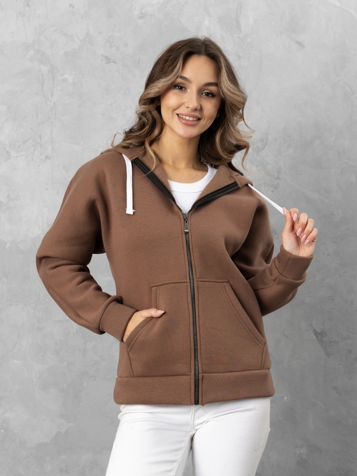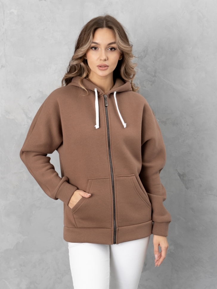 Толстовка с большим капюшоном с декоративным шнуром и карманами «кенгуру» из трикотажа с теплым начесом согреет в холода. Капюшон можно эффектно надеть на голову тем юным модницам, которые не хотят носить шапки.Толстовка с цельнокроеными рукавами и капюшоном застегивается на молнию. Накладные карманы «кенгуру». Рукав и низ изделия на манжетной резинке. Рекомендации в уходе за изделиями: Перед загрузкой в стиральную машину застегните молнию. Режим стирки «деликатный» при температуре воды не выше 30°С. По окончании - встряхните изделие, расправьте руками по швам и повесьте на плечики для просушки, не расстегивая молнию. Рост модели на фото 170 см. Параметры модели: 104-80-114. Размер изделия на модели: 54. Размер – Длина изделия по полочке (см): 44 – 69 46 – 69 48 – 69 50 – 69 52 – 74 54 – 74 56 – 74 58 – 74 60 – 79 62 – 79 64 – 79 66 – 79 Материал: футер 3х нитка с начесом (хлопок 80%, п/э 20%)