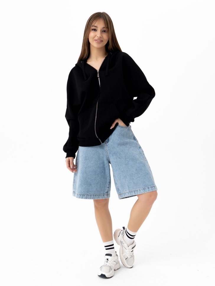 Толстовка с большим капюшоном с декоративным шнуром и карманами «кенгуру» из трикотажа с теплым начесом согреет в холода. Капюшон можно эффектно надеть на голову тем юным модницам, которые не хотят носить шапки.Толстовка с цельнокроеными рукавами и капюшоном застегивается на молнию. Накладные карманы «кенгуру». Рукав и низ изделия на манжетной резинке. Рекомендации в уходе за изделиями: Перед загрузкой в стиральную машину застегните молнию. Режим стирки «деликатный» при температуре воды не выше 30°С. По окончании - встряхните изделие, расправьте руками по швам и повесьте на плечики для просушки, не расстегивая молнию. Рост модели на фото 170 см. Параметры модели: 80-61-87. Размер изделия на модели: 44. Размер – Длина изделия по полочке (см): 44 – 69 46 – 69 48 – 69 50 – 69 52 – 74 54 – 74 56 – 74 58 – 74 60 – 79 62 – 79 64 – 79 66 – 79 Материал: футер 3х нитка с начесом (хлопок 80%, п/э 20%)