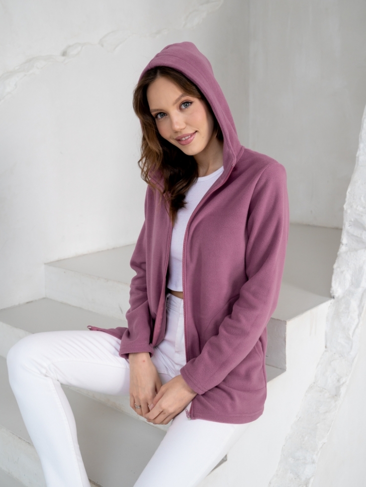 Толстовка из толстого трикотажного флиса, предоставляет большие возможности при создании многослойных ансамблей для женщин, которые идут в ногу с модой. Комби - партнерами к ним будут спортивные брюки, длинные юбки в клетку из теплого джерси. Толстовка прямого силуэта с капюшоном на стойке и длинными втачными рукавами. Застежка «молния» в тон изделия. Внутренние карманы в боковых швах выделены отделочной строчкой. Рекомендации в уходе за изделиями: Перед загрузкой в стиральную машину застегните молнию и выверните изделие на левую сторону. Температура воды не выше 40°С. Перед просушкой встряхните толстовку, выверните на правую сторону, оставив молнию закрытой, расправьте руками по швам и повесьте на плечики для просушки. Рост модели на фото 175 см. Параметры модели: 84-60-92. Размер изделия на модели: 46. Размер – Длина изделия по спинке (см): 46 – 73 48 – 73,5 50 – 74 52 – 74,5 54 – 75 56 – 75,5 58 – 76 60 – 76,5 Материал: флис (пэ 100%)