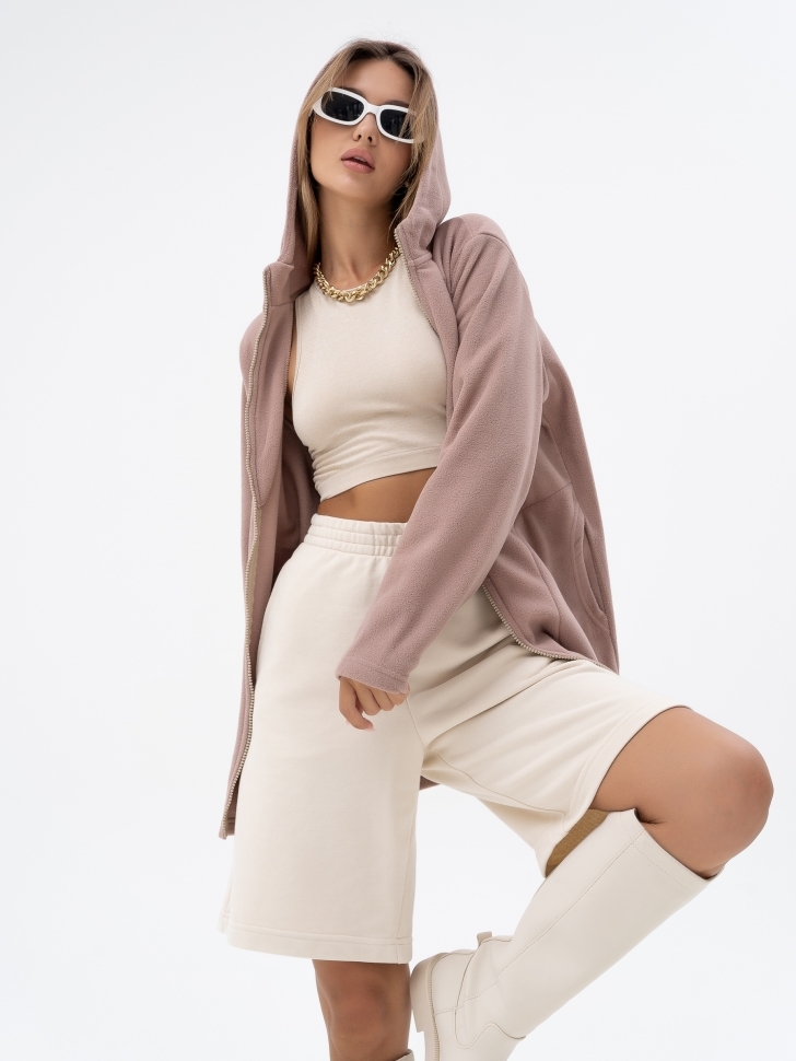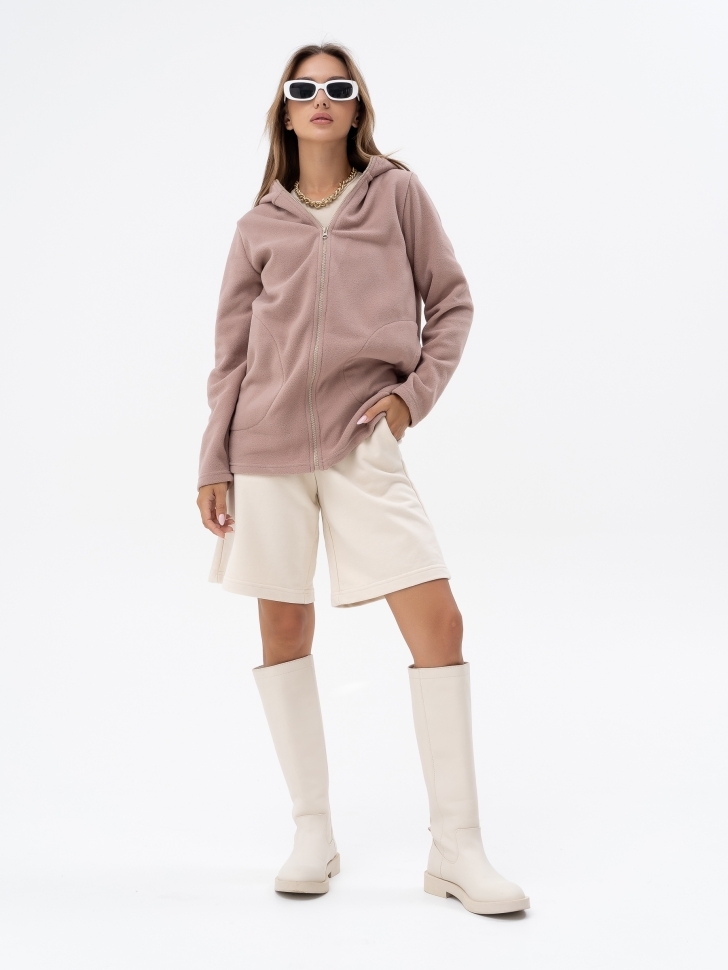 Толстовка из толстого трикотажного флиса, предоставляет большие возможности при создании многослойных ансамблей для женщин, которые идут в ногу с модой. Комби - партнерами к ним будут спортивные брюки, длинные юбки в клетку из теплого джерси. Толстовка прямого силуэта с капюшоном на стойке и длинными втачными рукавами. Застежка «молния» в тон изделия. Внутренние карманы в боковых швах выделены отделочной строчкой. Рекомендации в уходе за изделиями: Перед загрузкой в стиральную машину застегните молнию и выверните изделие на левую сторону. Температура воды не выше 40°С. Перед просушкой встряхните толстовку, выверните на правую сторону, оставив молнию закрытой, расправьте руками по швам и повесьте на плечики для просушки. Рост модели на фото 170 см. Параметры модели: 80-61-87. Размер изделия на модели: 46. Размер – Длина изделия по спинке (см): 46 – 73 48 – 73,5 50 – 74 52 – 74,5 54 – 75 56 – 75,5 58 – 76 60 – 76,5 Материал: флис (пэ 100%)