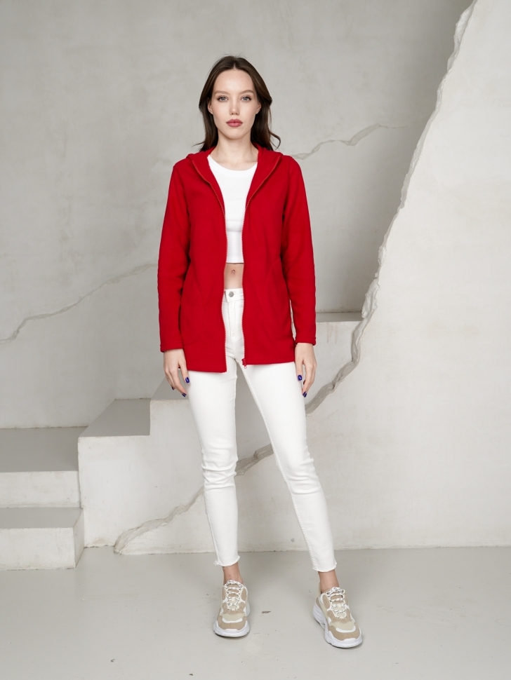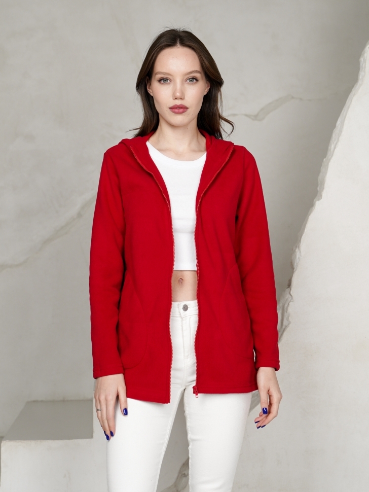Толстовка из толстого трикотажного флиса, предоставляет большие возможности при создании многослойных ансамблей для женщин, которые идут в ногу с модой. Комби - партнерами к ним будут спортивные брюки, длинные юбки в клетку из теплого джерси. Толстовка прямого силуэта с капюшоном на стойке и длинными втачными рукавами. Застежка «молния» в тон изделия. Внутренние карманы в боковых швах выделены отделочной строчкой. Рекомендации в уходе за изделиями: Перед загрузкой в стиральную машину застегните молнию и выверните изделие на левую сторону. Температура воды не выше 40°С. Перед просушкой встряхните толстовку, выверните на правую сторону, оставив молнию закрытой, расправьте руками по швам и повесьте на плечики для просушки. Рост модели на фото 175 см. Параметры модели: 84-60-92. Размер изделия на модели: 46. Размер – Длина изделия по спинке (см): 46 – 73 48 – 73,5 50 – 74 52 – 74,5 54 – 75 56 – 75,5 58 – 76 60 – 76,5 Материал: флис (пэ 100%)