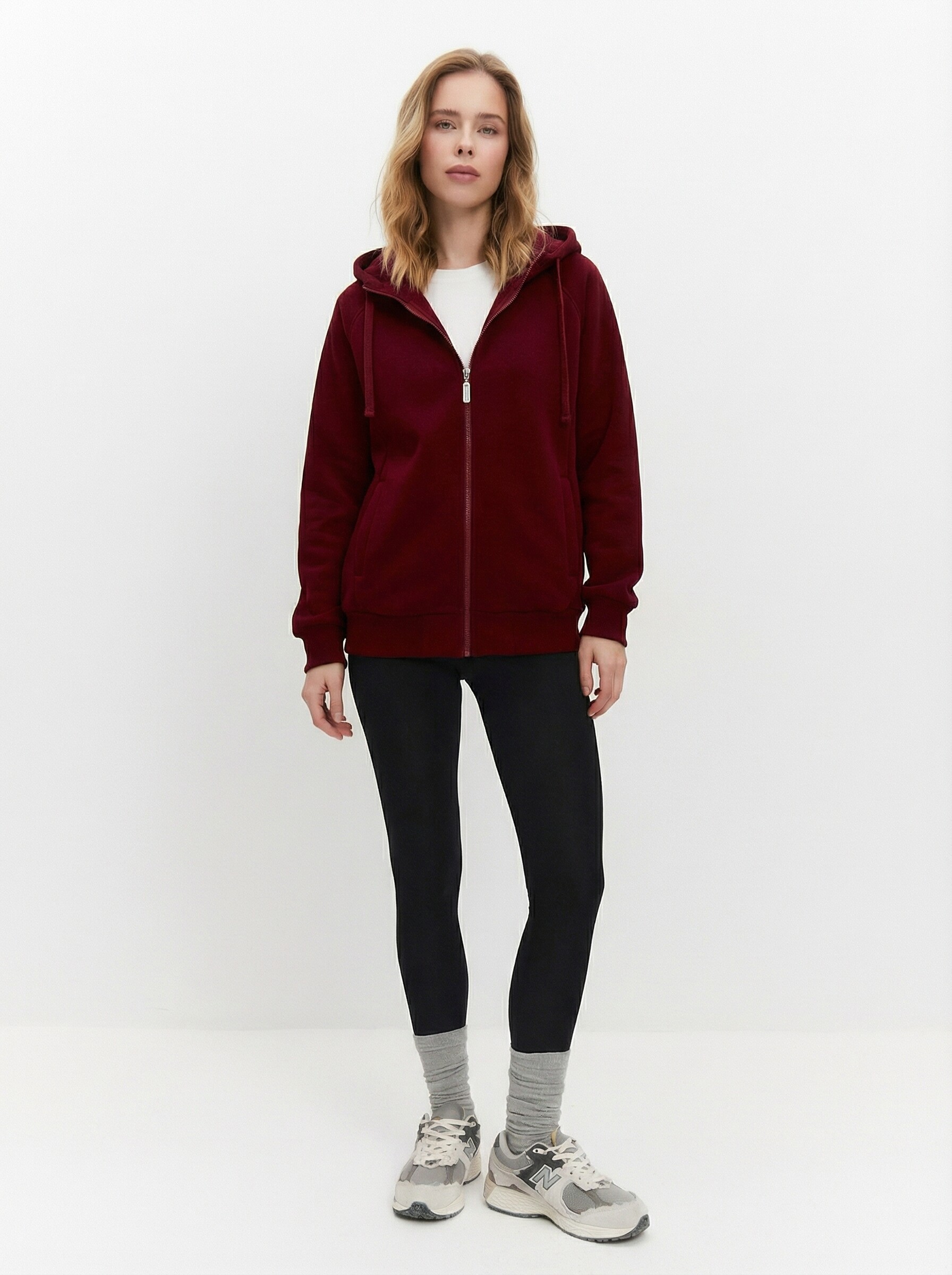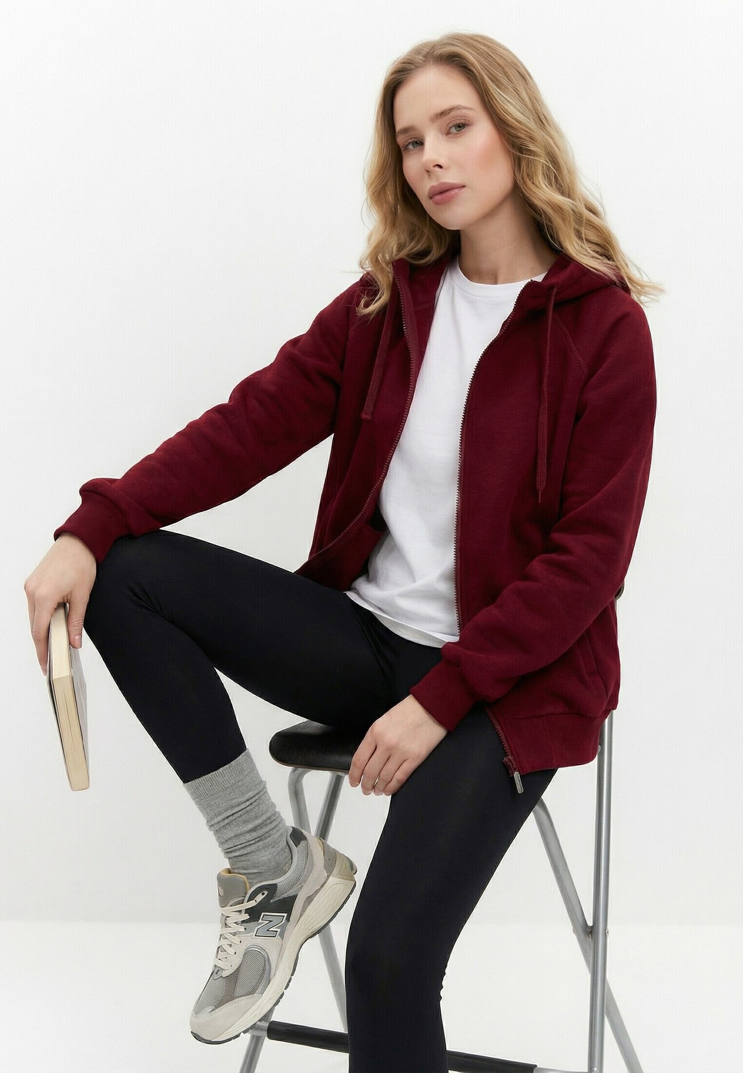 Женская толстовка с капюшоном из футера 3-х нитка диагональ микро-начес с "эффектом велюра". С центральной застежкой на молнию и втачным капюшоном. В капюшон вставлен шнур. В центральной молнии подвеска со светоотражением. Рукава покроя реглан. Манжеты и пояс из кашкорсе в цвет футера.  Карманы в рельефах переда. 95% хлопок, 5% эластан