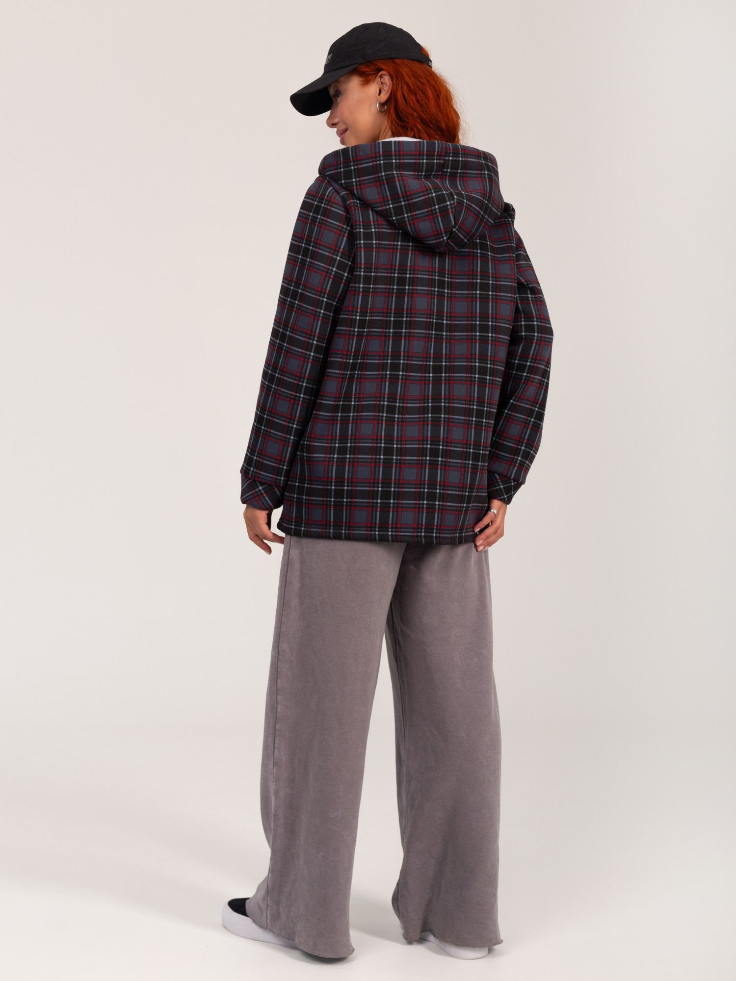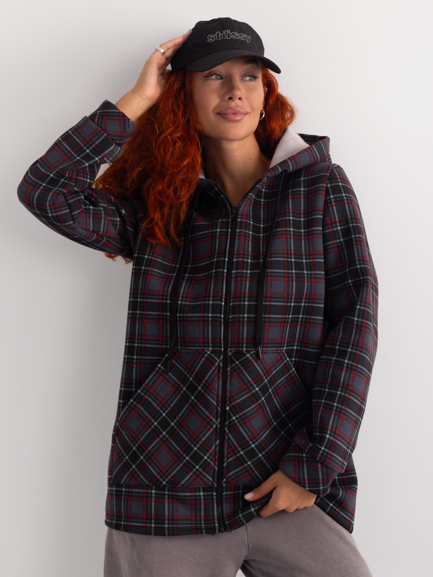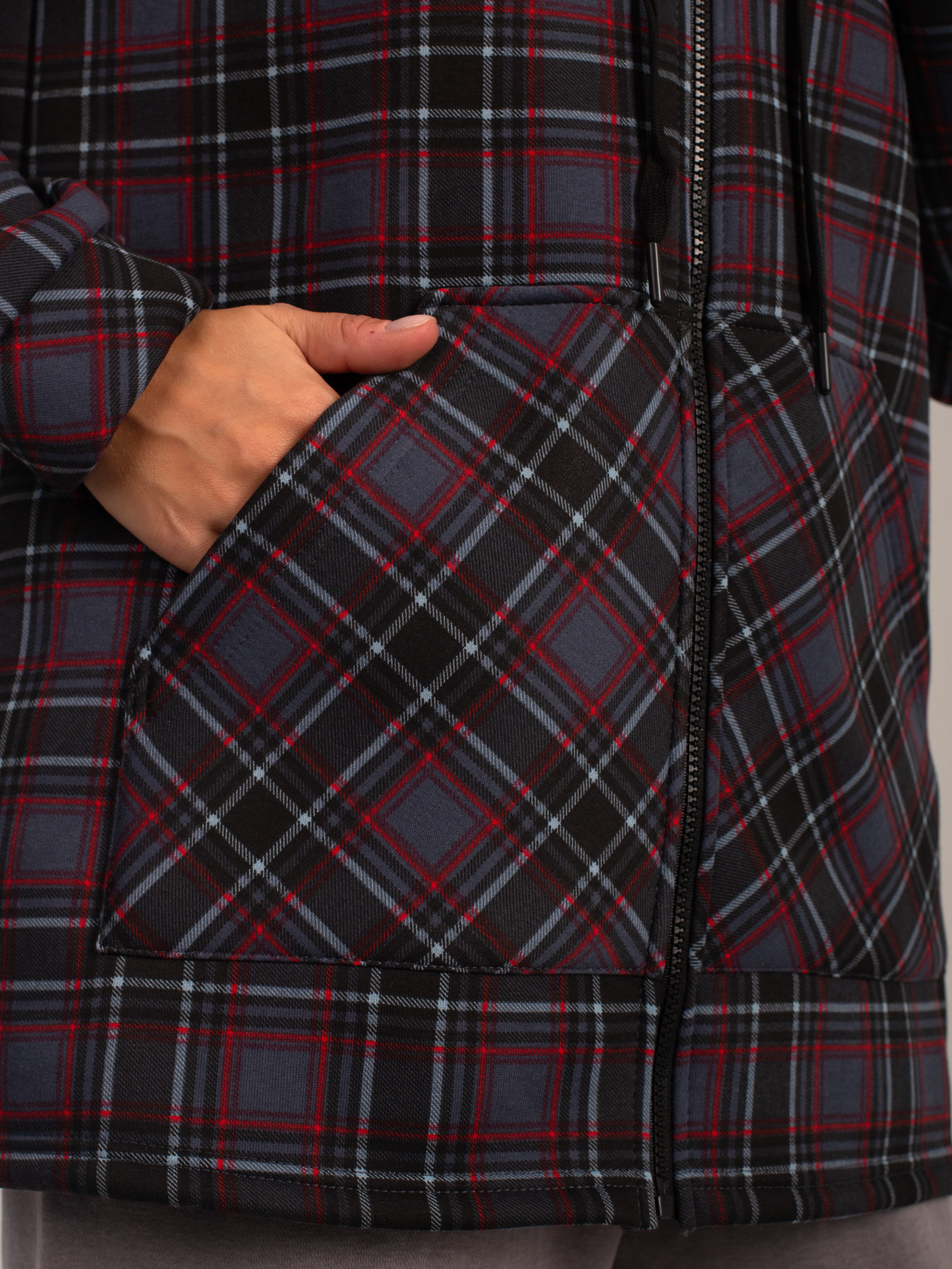 Толстовка женская футер начес 3-х нитка "РОКСАНА" СЕРАЯ КЛЕТКА