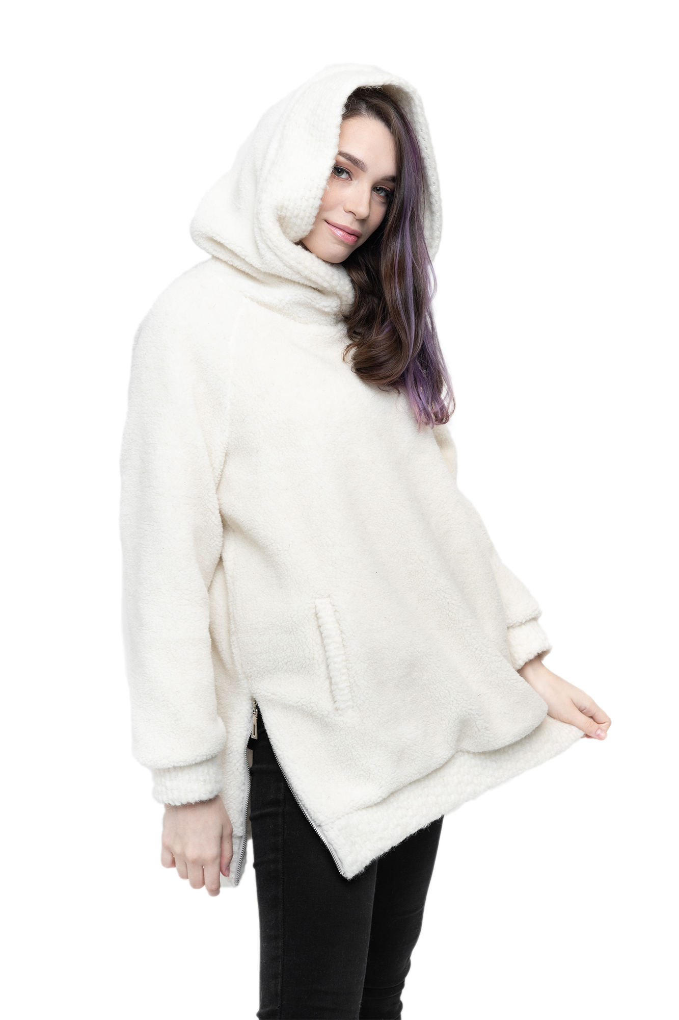 РОЗНИЧНАЯ ЦЕНА 9030руб. Указаны замеры готового изделия. Размеры соответствуют российским (по ГОСТу) с учетом запаса на свободу облегания 22-25см, Меховая толстовка, женская, с капюшоном, из натуральной овечьей шерсти. Подклад хлопковый, кулика,  нежный и мягкий, можно носить на голое тело, защитит от ветра и сквозняков. Отличный вариант для тех, кто не знает, чем заменить ветровку.Удобные карманы листочки, просторный капюшон сделают ваш образ максимально комфортным, а различные вариации цветов помогут добавить изюминки., Капюшон и манжет по низу толстовки декорирован букле (вязанный мех) в тон изделия, две декоративные молнии по бокам для красоты и вашего удобства дополняют стильный образ на все случаи жизни!, Наши изделия созданы из новейшего, уникального, разработанного специально для нас, материала на основе овечьей шерсти. Мягкий, легкий, пластичный он подарит тепло и комфорт своей обладательнице. Стильный фасон отвечает всем современным тенденциям моды и стиля!, Все наши лекала уникальны и не имеют аналогов, разработанны на собственном швейном производстве фабрики WOOLLAMB, это обеспечивает отличную посадку и комфортное использование для любой фигуры., Примерная температура носки от -10 до +15 градусов, Благодаря высокому содержанию ланолина, шерсть обладает высокими оздоравливающими и согревающими свойствами, благоприятно влияет на весь организм в целом! Одежда из натуральной шерсти подарит легкость, комфорт и сухое тепло рожденное природой!, Уход за изделиями максимально прост, стирка ручная со средствами для шерсти, или сухая химчистка, при необходимости можно отпарить паровым утюгом.