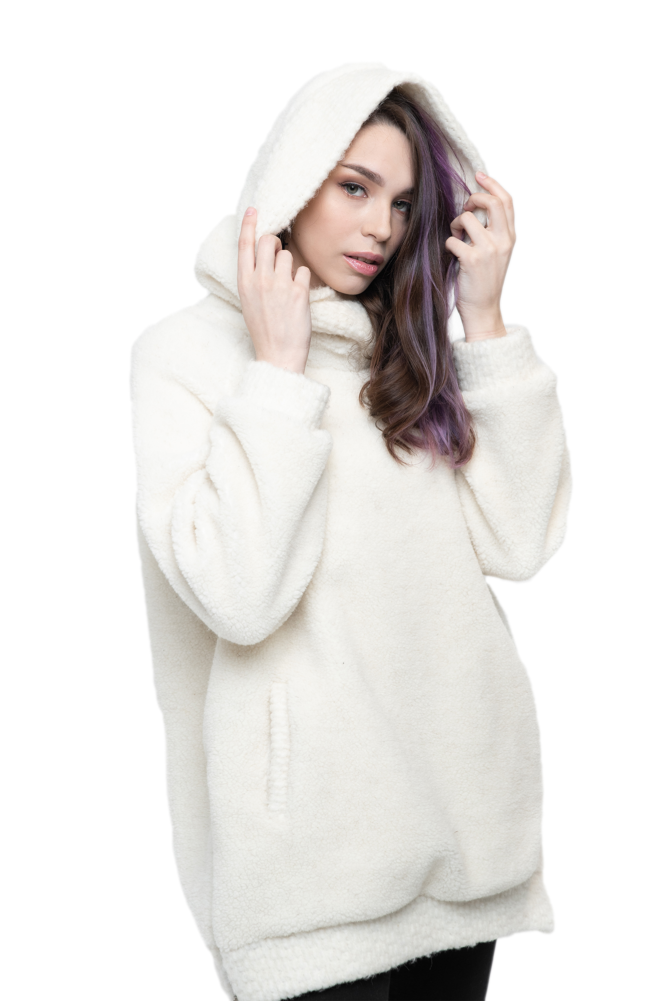 Толстовка женская из овечьей шерсти оверсайз FOR WOMEN (с капюшоном, цвет Ваниль) цвет БЕЛЫЙ