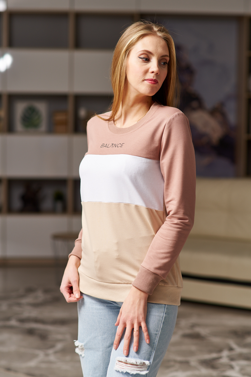 Толстовка женская Триколор какао/крем