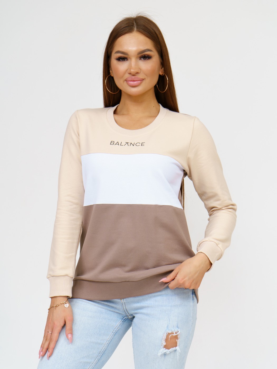 Толстовка женская Триколор крем/какао