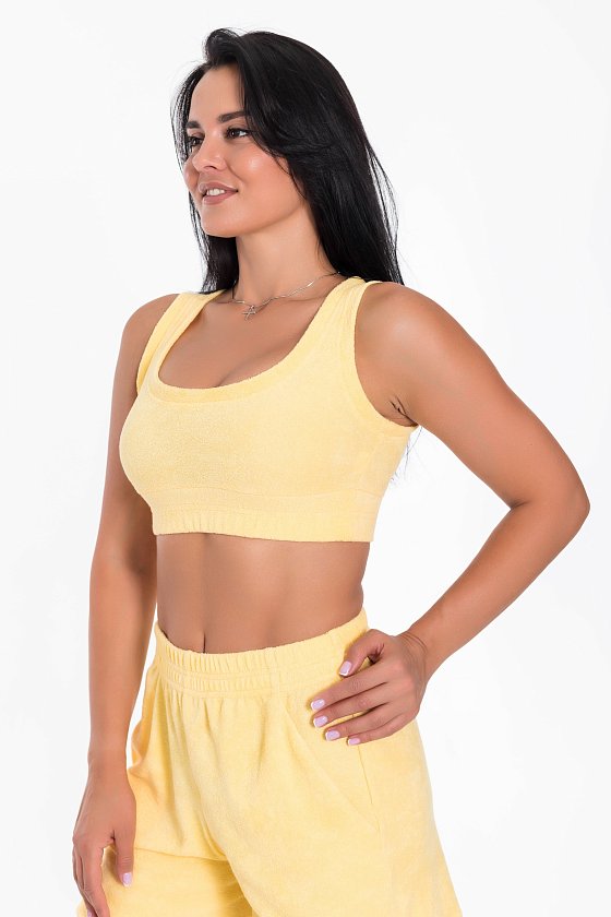 Женский топ из махры — отличный выбор для создания уютного и комфортного образа. Топ выполнен из мягкой и приятной на ощупь ткани, которая обеспечивает тепло и комфорт.