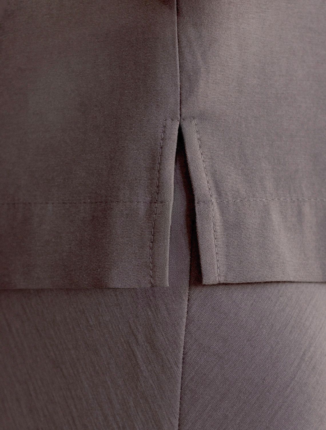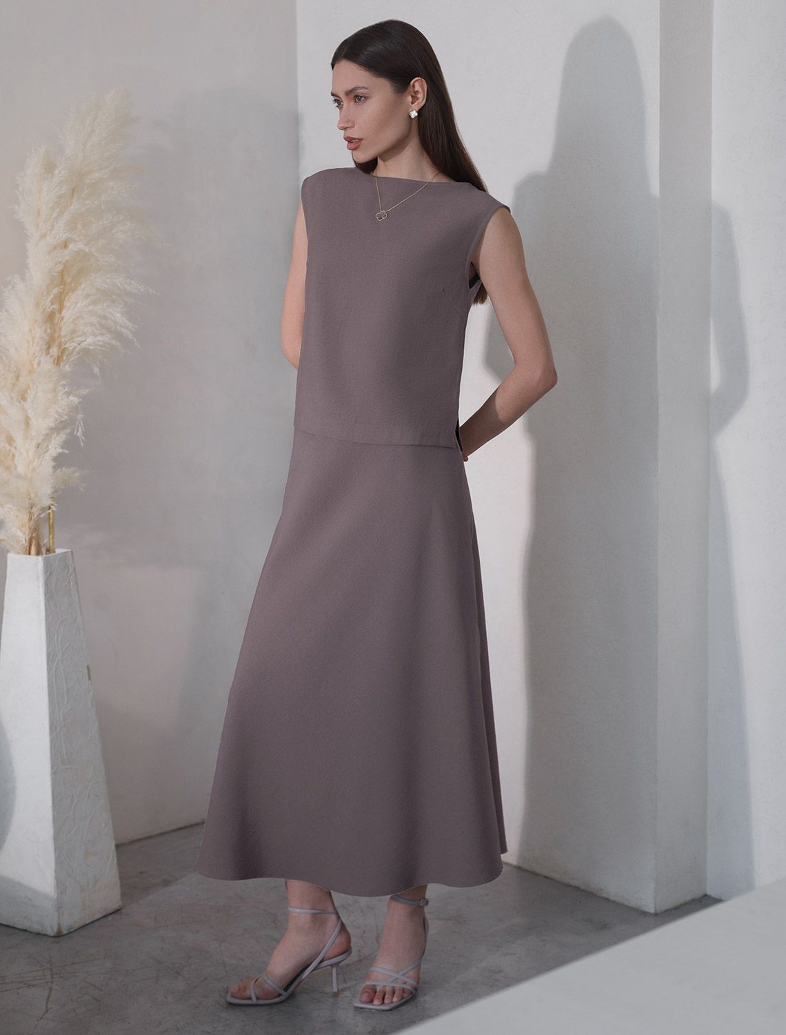 Изысканный топ кофейного цвета с элегантным вырезом-лодочкой, выполненный из плотного лиоцелла. Лиоцелл это более дорогой и экологичный вариант вискозы, очень прочный и шелковистый. Ткань отличается от регулярной коллекции из лиоцелла - она содержит еще больше лиоцелла (92%), благодаря чему имеет более нежную шелковистую фактуру. Вырез лодочка придает топу утонченность, а небольшие разрезы по бокам добавляют легкости. Простой прямой крой в сочетании с интересными деталями создает стильную и в то же время комфортную вещь. Топ средней длины подойдет для любительниц базовой одежды, которые хотят деликатно повысить градус своего стиля. Этот лаконичный топ будет идеальным выбором для теплого времени года или многослойных ансамблей. Комплект из лиоцелла подчеркнет ваш вкус и статус. Это идеальный выбор для особенных моментов. Такой образ будет уместен на торжественных мероприятиях и приемах, выпускных вечерах, семейных праздниках и свадьбах.
