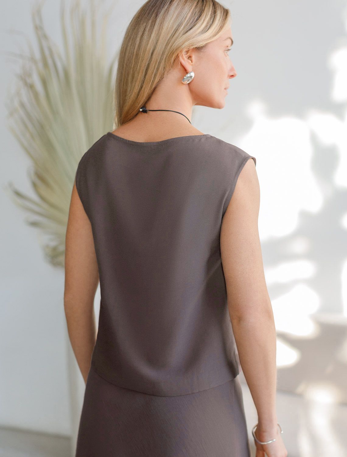 Топ c вырезом лодочка из плотного лиоцелла D23.079 кофейный