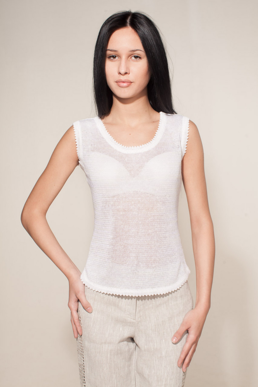Топ из льна, кулирная гладь.