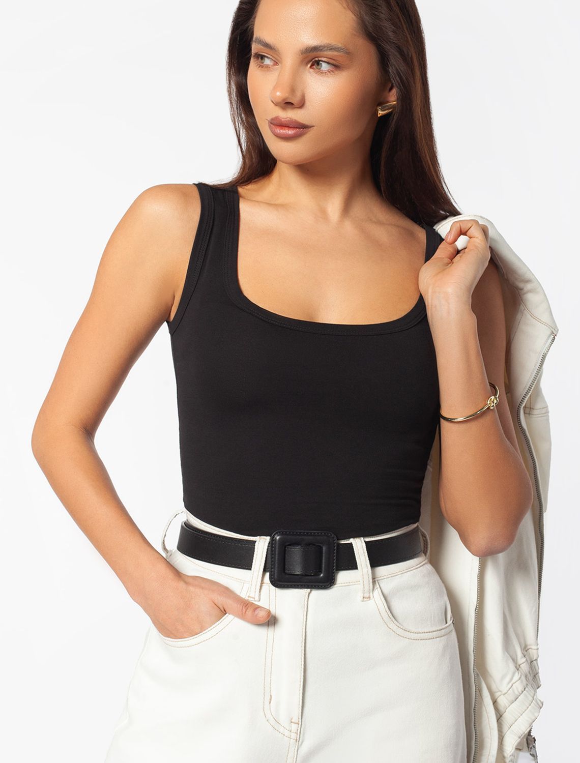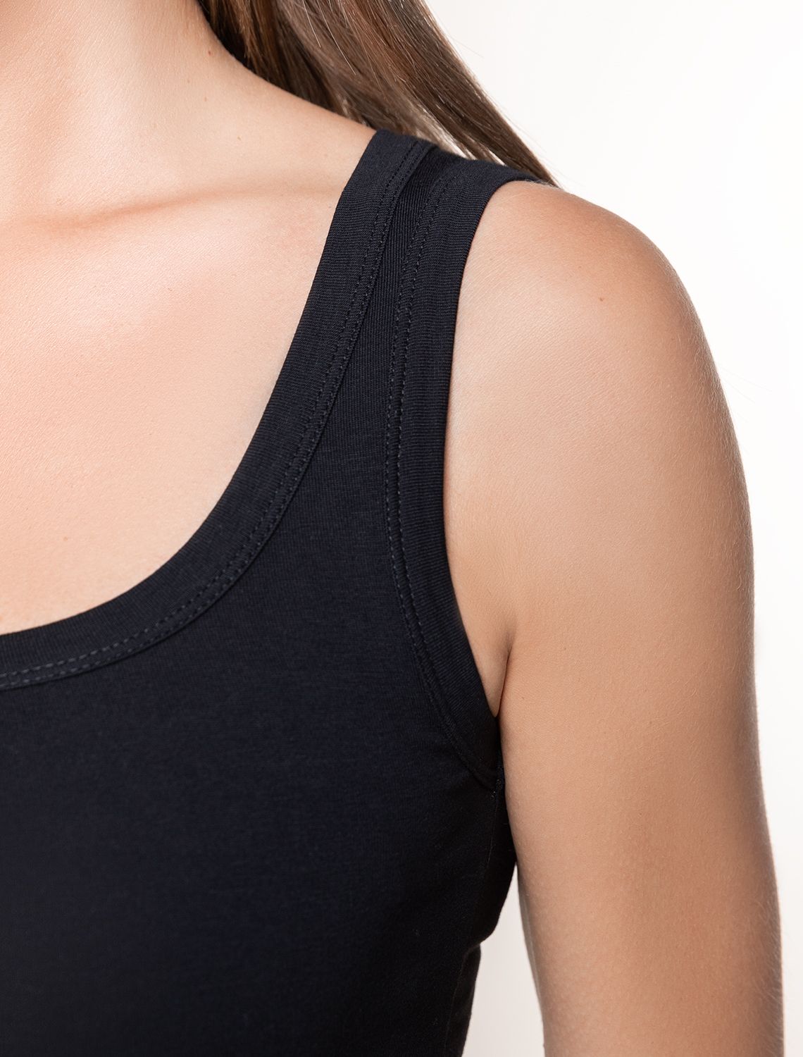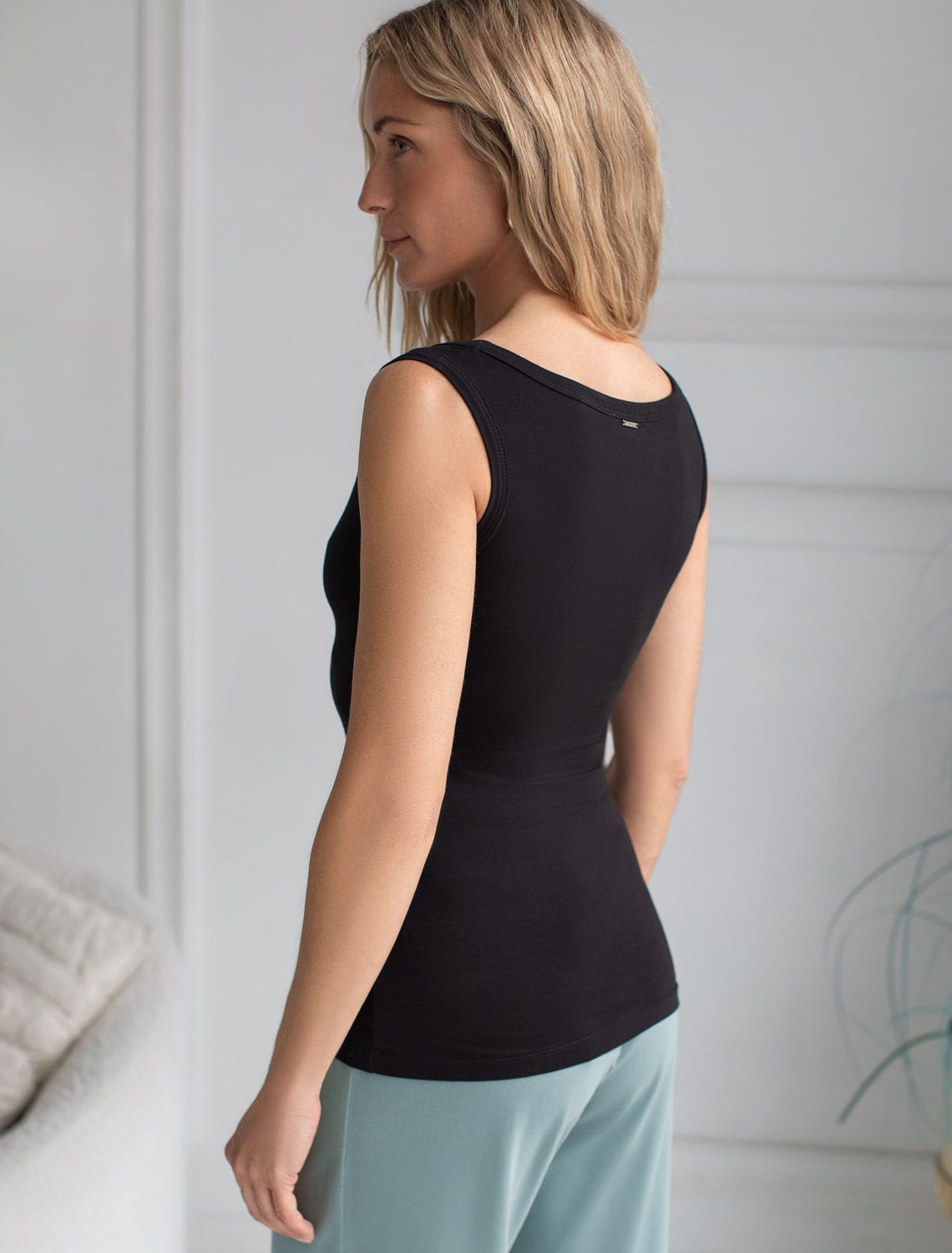 Эта базовая майка подойдет на все сезоны, в том числе, как нижний слой. Майка подходит для больших, включая 56 размер, и маленьких размеров, а также смотрится изящно как на высокий рост, так и на низкий. Благодаря своей универсальности топ будет уместен на работе, деловых встречах или в повседневном образе. Он станет гармоничным дополнением, сохраняя элегантность даже в офисной обстановке. Незаменим в поездки, в путешествия, на отдых.