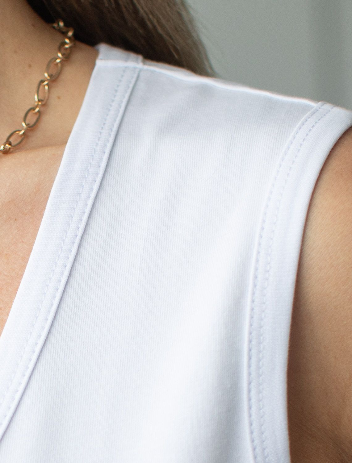 Топ выполнен из премиального хлопка с эластаном. V- вырез подчеркивает линию декольте и визуально вытягивает шею. Лаконичная базовая модель впишется в любой гардероб и дополнит многослойные образы. Материал изделия хорошо тянется и гарантирует идеальную посадку по фигуре. Топ украшен только металлическим логотипом бренда. белый