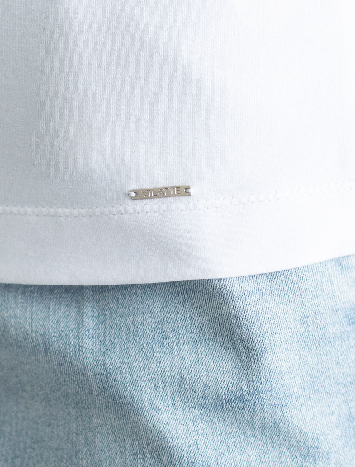Топ выполнен из премиального хлопка с эластаном. Лаконичная базовая модель впишется в любой гардероб и дополнит многослойные образы. Материал изделия хорошо тянется и гарантирует идеальную посадку по фигуре. Из украшений только металлическим логотипом бренда. белый