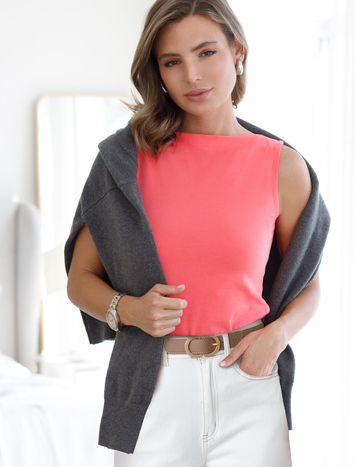 Топ из премиального хлопка с эластаном D43.201 розовый коралл