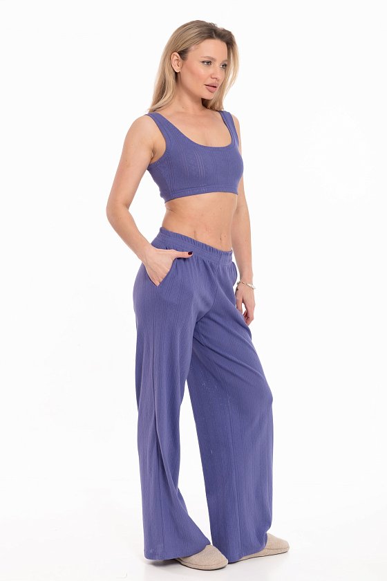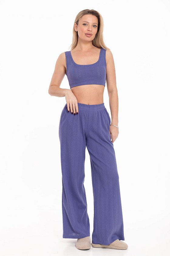 Топ выполнен из трансферной рибаны, обеспечивающей идеальную посадку по фигуре. Облегающий крой модели подчеркивает естественные линии тела. Широкий вырез и низкая линия спинки создают элегантный силуэт, а бретели обеспечивают удобство. Резинка по низу топа гарантирует комфортную посадку, не сползая в течение дня. Этот топ станет стильной и удобной основой для домашнего отдыха и расслабления.
