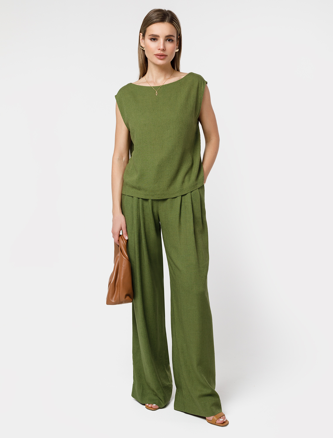 Топ изо льна с вискозой D23.060 натуральный зеленый