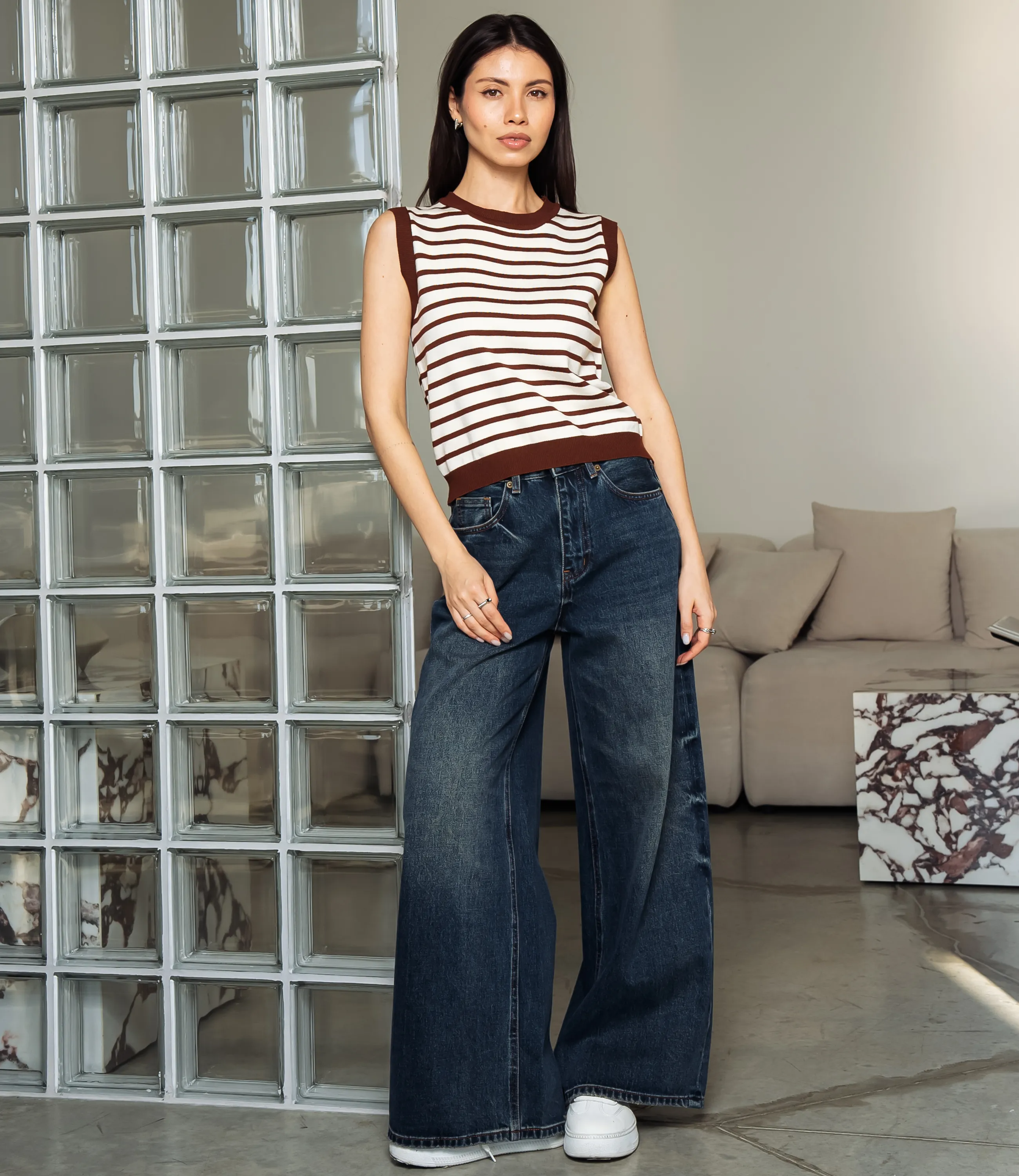 Топ – это одежда, которая подчеркивает привлекательность каждой девушки. Свободный, слегка расширенный к низу крой, который не сковывает движения и подходит для любой фигуры. Топ прямого силуэта, чуть прилегающий в области груди и свободнее у талии, длиной до пояса, с круговым плотным горлом и широкими плечевыми окатами без рукавов, проймы аккуратно обработаны эластичной трикотажной каймой, низ усилен широкой резинкой, изделие связано тонким эластичным трикотажным полотном средней плотности с ровной вязкой и мягкой на ощупь фактурой. Для пошива использована ткань из 65% хлопок и 35% полиэстер , которая характеризуется отличным качеством. Даже после многих стирок изделие не утратит первоначальной привлекательности. Вы будете носить его с радостью. Обратите внимание на насыщенный цвет. Он соответствует фото на сайте. Чтобы вы были уверены в размере, мы предоставили на странице таблицу. С помощью нее вы сможете сами сделать мерки и удостовериться. Установленная нами цена является доступной. Подарите себе удовольствие быть неповторимой! Рост модели: 164, параметры: 83-61-89.