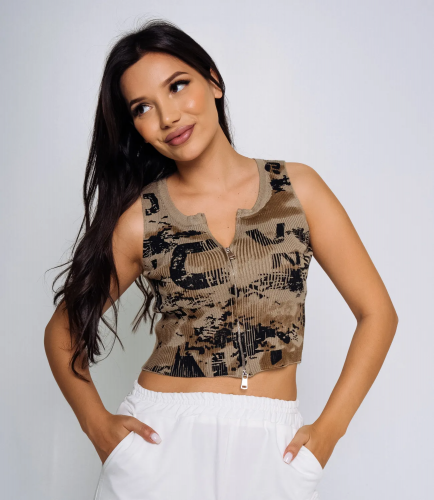 Топ – это одежда, которая подчеркивает привлекательность каждой девушки. Данная модель с ярким дизайном и застежкой на змейке отлично подойдет для летнего сезона. Ее приобретают гостьи, которые ценят сочетание эксклюзивности и цены. Силуэт подчеркивает красоту фигуры. Производитель умеет находить неординарные и модные решения. Для пошива выбрана ткань из 65% хлопка, 30% полиэстера, 5% эластана, которая характеризуется отличным качеством. Даже после многих стирок изделие не утратит первоначальной индивидуальности. Вы будете носить его с большим удовольствием. Обращайте внимание на яркий дизайн и застежку на змейке - они придают топу оригинальный вид. Цвет является насыщенным и полностью соответствует фотографии на сайте. Чтобы вы не сомневались в размере, мы предоставили на странице таблицу. Воспользовавшись ею, вы сами сможете сделать мерки и удостовериться. Установленная нами цена является доступной. Подарите себе удовольствие быть неповторимой! Рост 170см, 86-68-95.