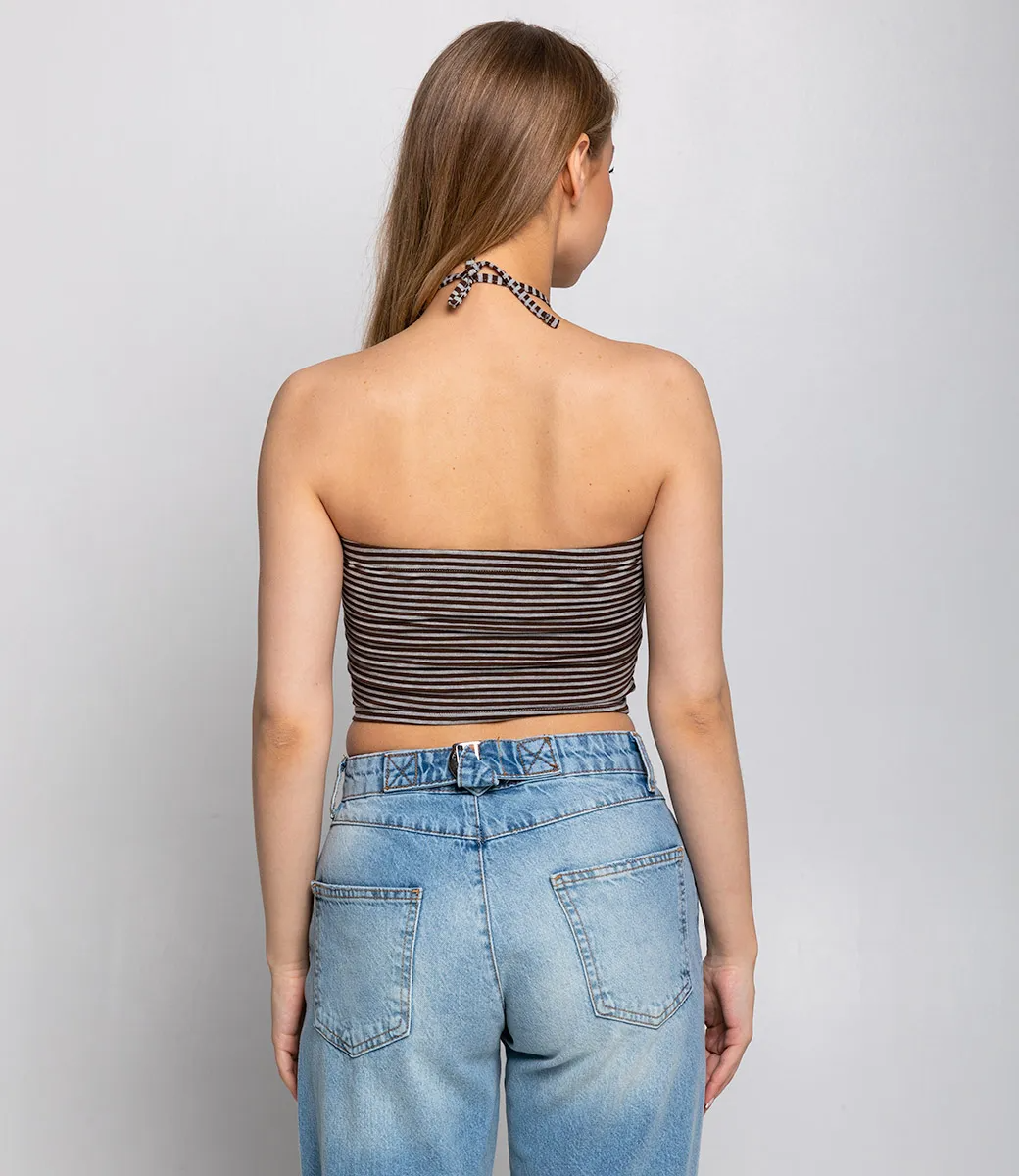 Топ – это одежда, которая подчеркивает привлекательность каждой девушки. ТМодель без рукавов, с открытыми плечами и верхней частью груди. Верхняя часть топа фиксируется с помощью тонкого завязывающегося шейного ремешка, который формирует эффект халтер и придает топу декоративный элемент. Топ плотно прилегает к телу, подчёркивая силуэт, а длина заканчивается выше талии, оголяя живот. Край изделия ровный, без дополнительных украшений или отделки. Полосатый узор делает модель более стильной и молодежной. Для пошива использована ткань из 95% хлопка, 5% спандекса, которая характеризуется отличным качеством. Даже после многих стирок изделие не утратит первоначальной привлекательности. Вы будете носить его с радостью. Обратите внимание на насыщенный цвет. Он соответствует фото на сайте. Чтобы вы были уверены в размере, мы предоставили на странице таблицу. С помощью нее вы сможете сами сделать мерки и удостовериться. Установленная нами цена является доступной. Подарите себе удовольствие быть неповторимой! Рост 168, 89-63-90. Вы можете заказать онлайн презентацию на интересующие Вас модели. Наши менеджеры свяжутся с Вами и проведут индивидуальную видеотрансляцию, помогут составить заказ и ответят на Ваши вопросы.