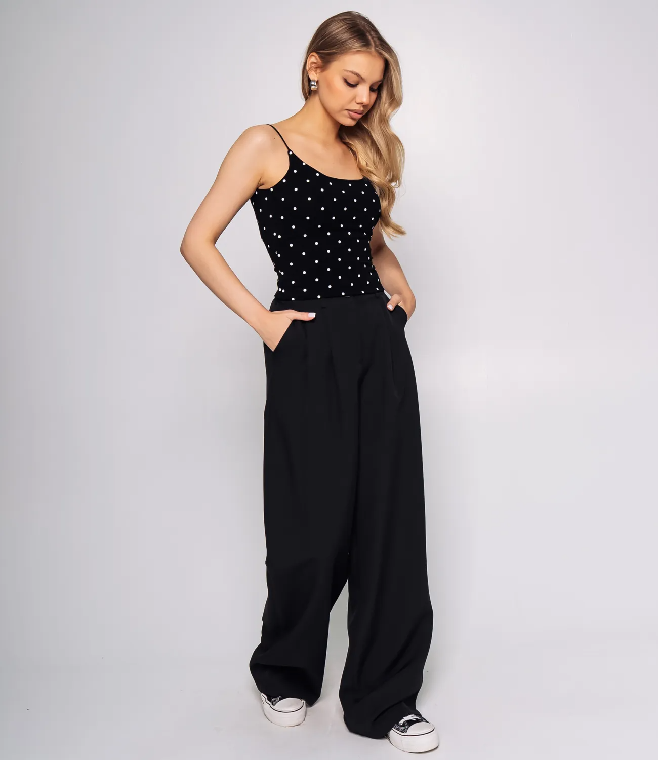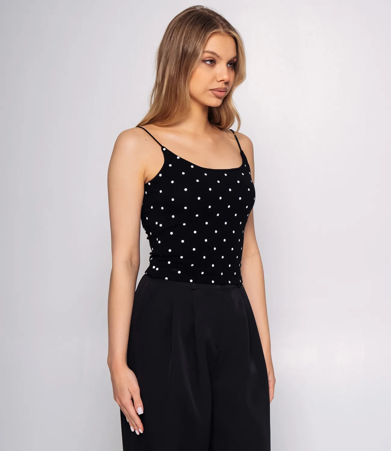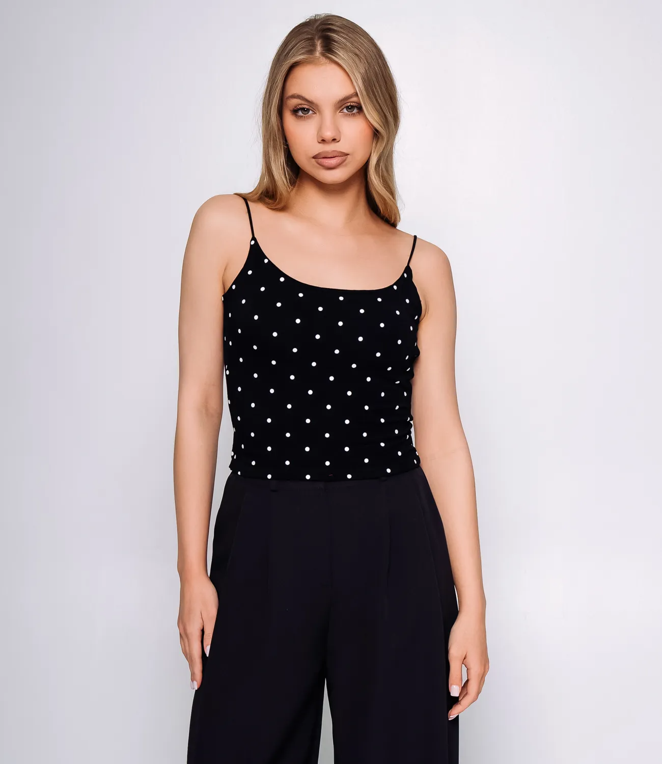 Топ – это одежда, которая подчеркивает привлекательность каждой девушки. Топ выполнен из мягкого и эластичного материала, состоящего из 89,9% вискозы и 10,1% спандекса. Дизайн топа включает тонкие бретели, которые создают легкий и женственный образ. Верхняя часть топа украшена мелким узором в виде гороха, что добавляет изысканности и оригинальности. Модель имеет приталенный силуэт, который подчеркивает фигуру, а эластичная ткань обеспечивает свободу движений. Даже после многих стирок изделие не утратит первоначальной привлекательности. Вы будете носить его с радостью. Обратите внимание на насыщенный цвет. Он соответствует фото на сайте. Чтобы вы были уверены в размере, мы предоставили на странице таблицу. С помощью нее вы сможете сами сделать мерки и удостовериться. Установленная нами цена является доступной. Подарите себе удовольствие быть неповторимой! Рост модели 168 см., 89-63-90.