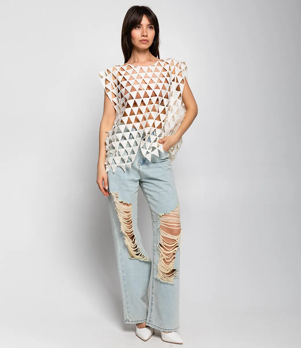 Топ – это одежда, которая подчеркивает привлекательность каждой девушки. Это топ с уникальным дизайном, который сочетает в себе элегантность и креативность. Отличается эффектной вышивкой или аппликацией в виде геометрических фигур , что делает его необычным и привлекающим внимание. Для пошива использована ткань из 100% хлопка, которая характеризуется отличным качеством. Даже после многих стирок изделие не утратит первоначальной привлекательности. Вы будете носить его с радостью. Обратите внимание на насыщенный цвет. Он соответствует фото на сайте. Чтобы вы были уверены в размере, мы предоставили на странице таблицу. С помощью нее вы сможете сами сделать мерки и удостовериться. Установленная нами цена является доступной. Подарите себе удовольствие быть неповторимой! Рост модели 168, 85-63-92.