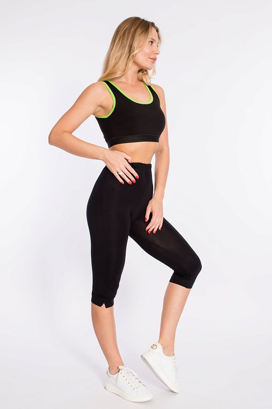 Спортивный топ из кулирки с лайкрой с широкой отделочной резинкой по низу. Внутри мягкие чашечки, пройма и горловина обработаны отделочной бейкой.