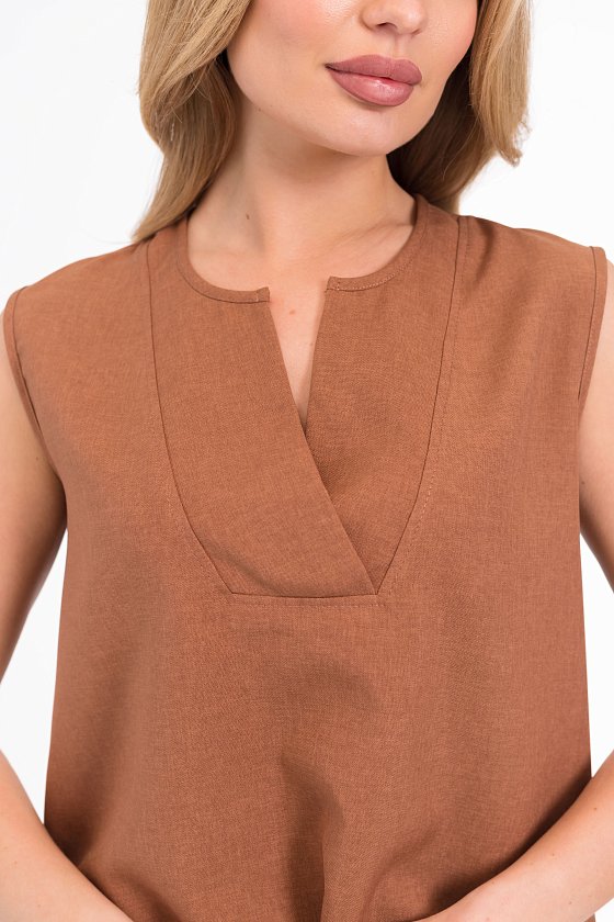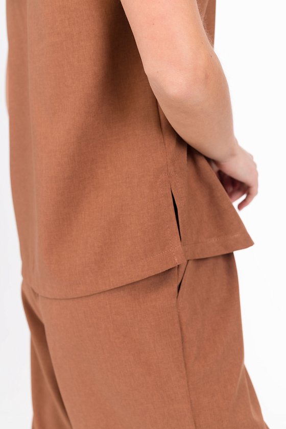 Топ из однотонного полотна "искусственный лен". В боковых швах разрезы.