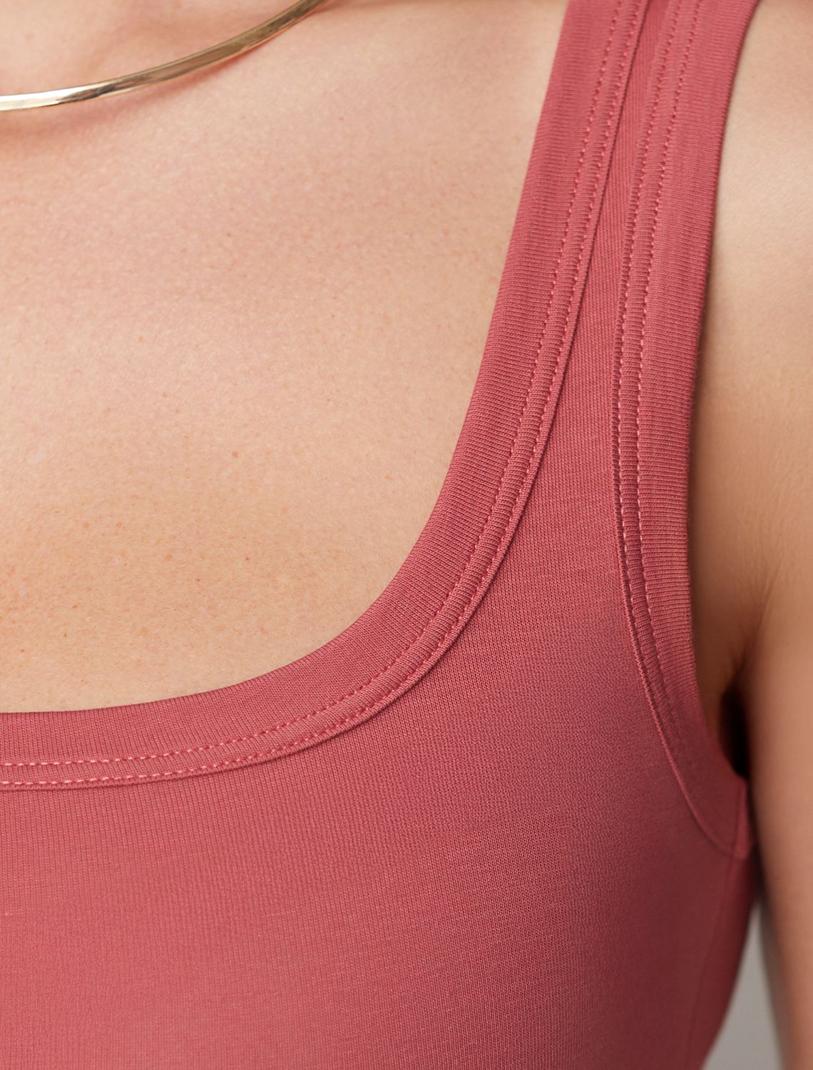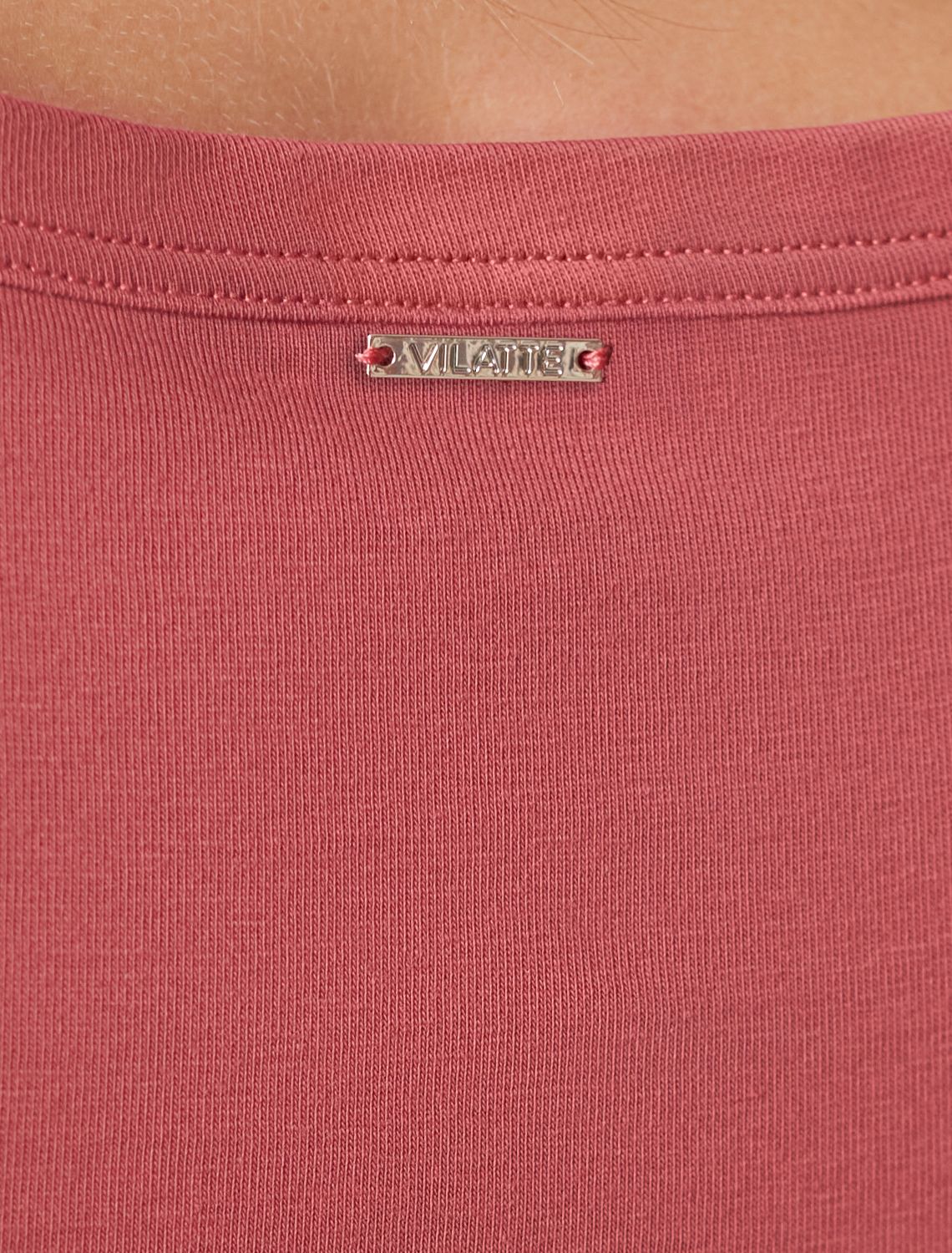 Стильный и женственный топ темно-кораллового цвета из премиального хлопка станет отличным дополнением вашего гардероба. Актуальный дизайн и однотонное исполнение позволяют легко комбинировать его как с деловым костюмом, так и с повседневными вещами. Облегающий силуэт идеально подчеркивает фигуру, не сковывая движений, обеспечивая комфорт на весь день. Дышащая ткань с добавлением эластана приятно прилегает к телу и прекрасно тянется, что делает изделие подходящим для девушек и женщин всех возрастов.