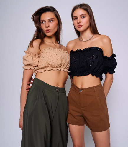 Нежный топ из 100% хлопка – отличный вариант для жаркой погоды. Топ подойдет для создания повседневного и романтического образа. Его можно сочетать с юбкой, брюками, джинсами, шортами.