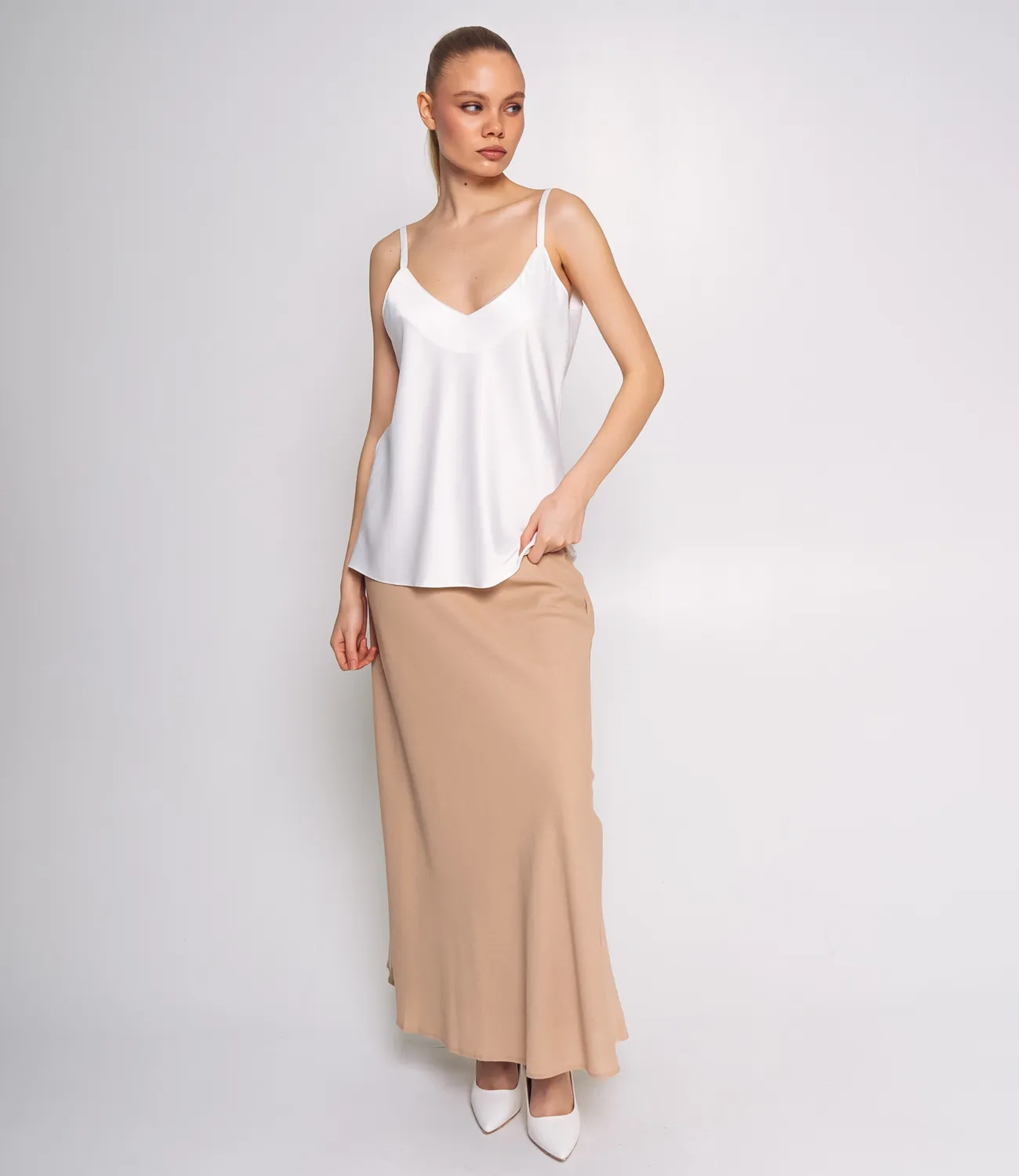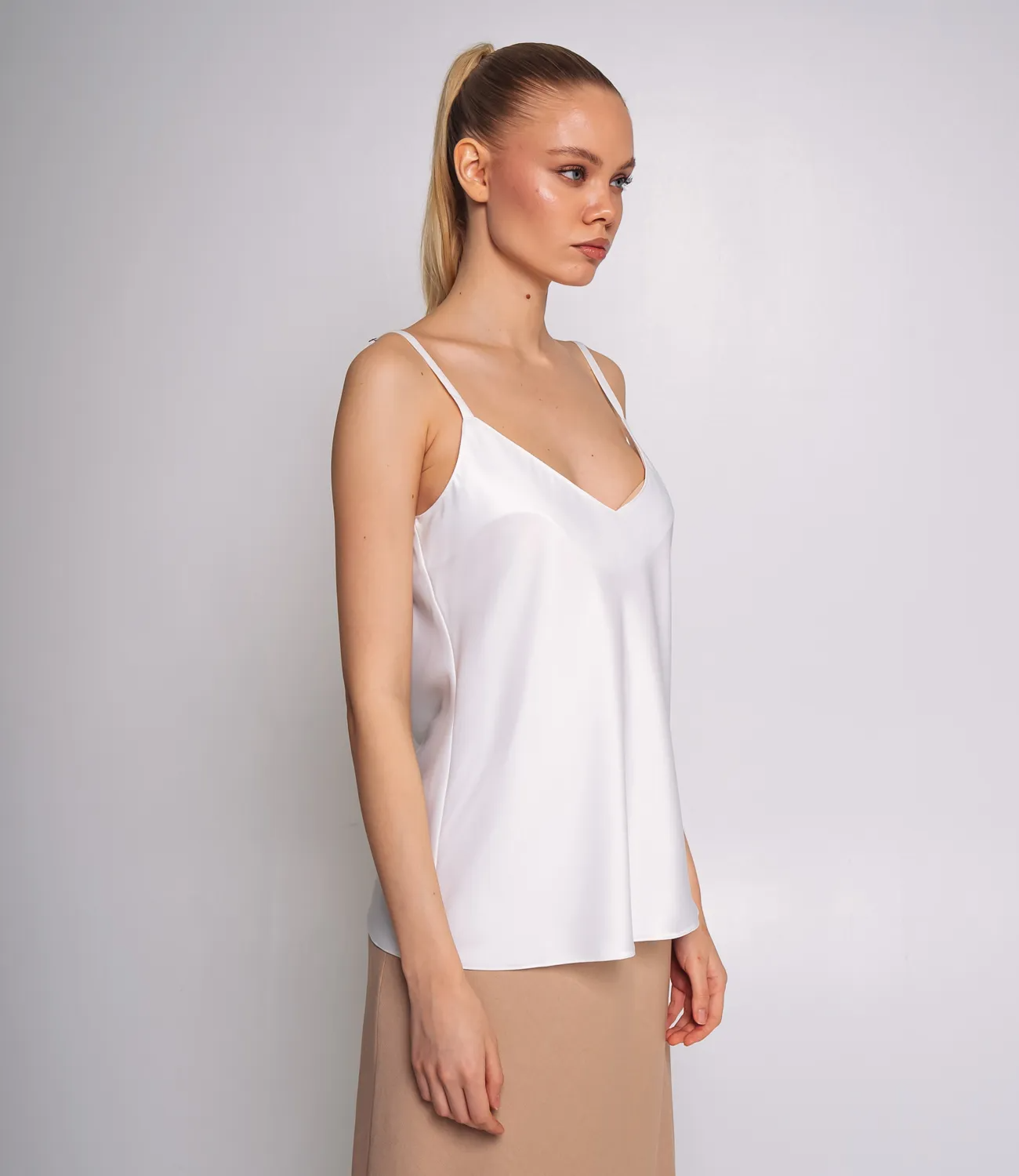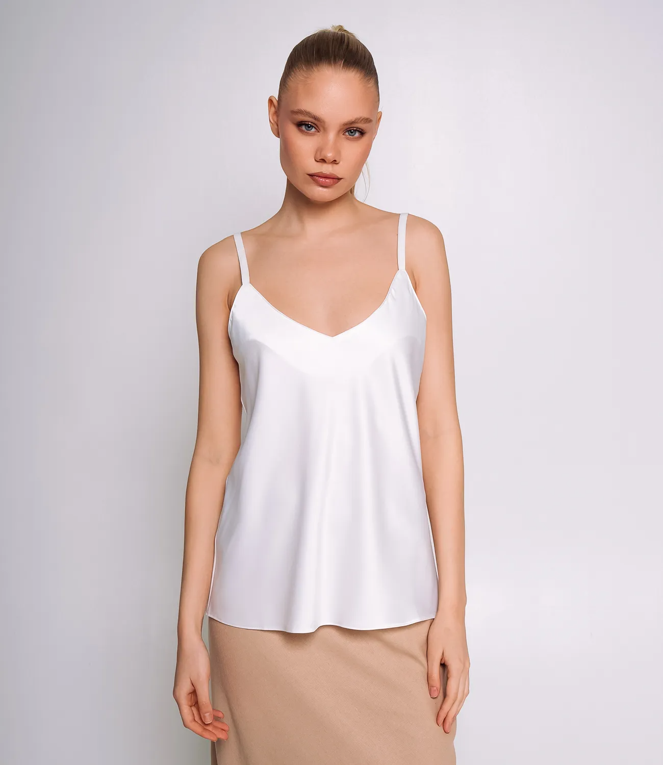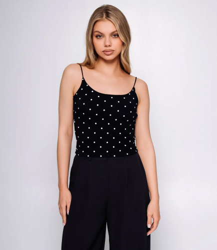 Топ – это одежда, которая подчеркивает привлекательность каждой девушки. Свободный, слегка расширенный к низу крой, который не сковывает движения и подходит для любой фигуры. Топ имеет V-образный вырез, визуально удлиняющий шею и акцентирующий внимание на декольте. Тонкие регулируемые бретели, которые позволяют подстроить изделие под индивидуальные параметры и обеспечивают удобную посадку. Минималистичный и лаконичный дизайн без дополнительных украшений, что делает этот топ универсальной базовой вещью, идеальной для создания как повседневных, так и вечерних образов. Для пошива использована ткань из 100% полиэстер , которая характеризуется отличным качеством. Даже после многих стирок изделие не утратит первоначальной привлекательности. Вы будете носить его с радостью. Обратите внимание на насыщенный цвет. Он соответствует фото на сайте. Чтобы вы были уверены в размере, мы предоставили на странице таблицу. С помощью нее вы сможете сами сделать мерки и удостовериться. Установленная нами цена является доступной. Подарите себе удовольствие быть неповторимой! Рост модели: 173, параметры: 84-58-89.