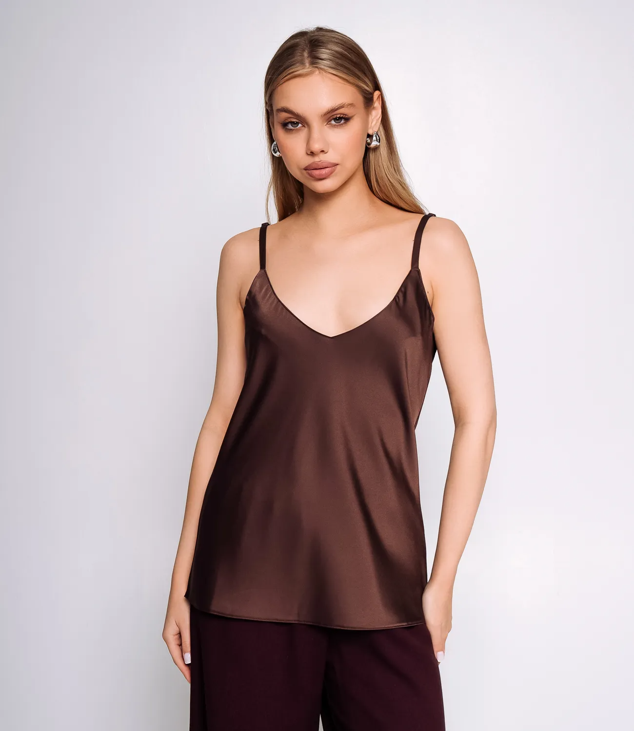 Топ – это одежда, которая подчеркивает привлекательность каждой девушки. Свободный, слегка расширенный к низу крой, который не сковывает движения и подходит для любой фигуры. Топ имеет V-образный вырез, визуально удлиняющий шею и акцентирующий внимание на декольте. Тонкие регулируемые бретели, которые позволяют подстроить изделие под индивидуальные параметры и обеспечивают удобную посадку. Минималистичный и лаконичный дизайн без дополнительных украшений, что делает этот топ универсальной базовой вещью, идеальной для создания как повседневных, так и вечерних образов. Для пошива использована ткань из 100% полиэстер , которая характеризуется отличным качеством. Даже после многих стирок изделие не утратит первоначальной привлекательности. Вы будете носить его с радостью. Обратите внимание на насыщенный цвет. Он соответствует фото на сайте. Чтобы вы были уверены в размере, мы предоставили на странице таблицу. С помощью нее вы сможете сами сделать мерки и удостовериться. Установленная нами цена является доступной. Подарите себе удовольствие быть неповторимой! Рост модели: 168, параметры: 89-63-90.