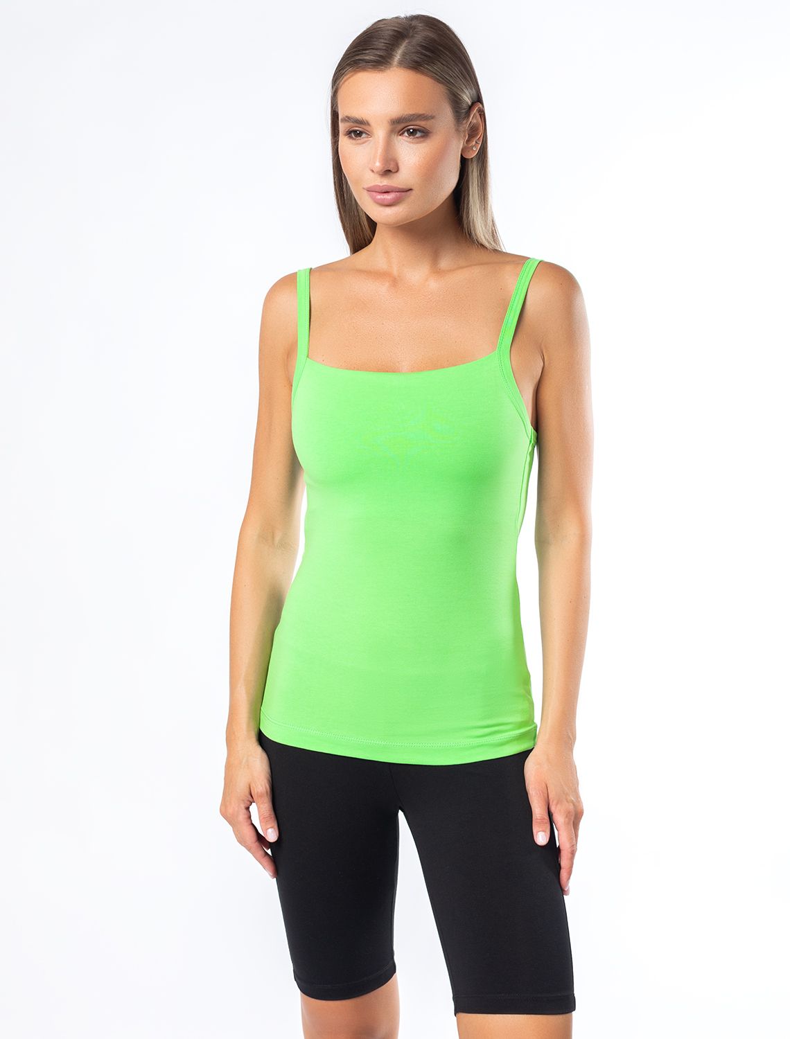 Базовый топ регулируемых бретелях из премиального хлопка. Двуслойная зона бра.
