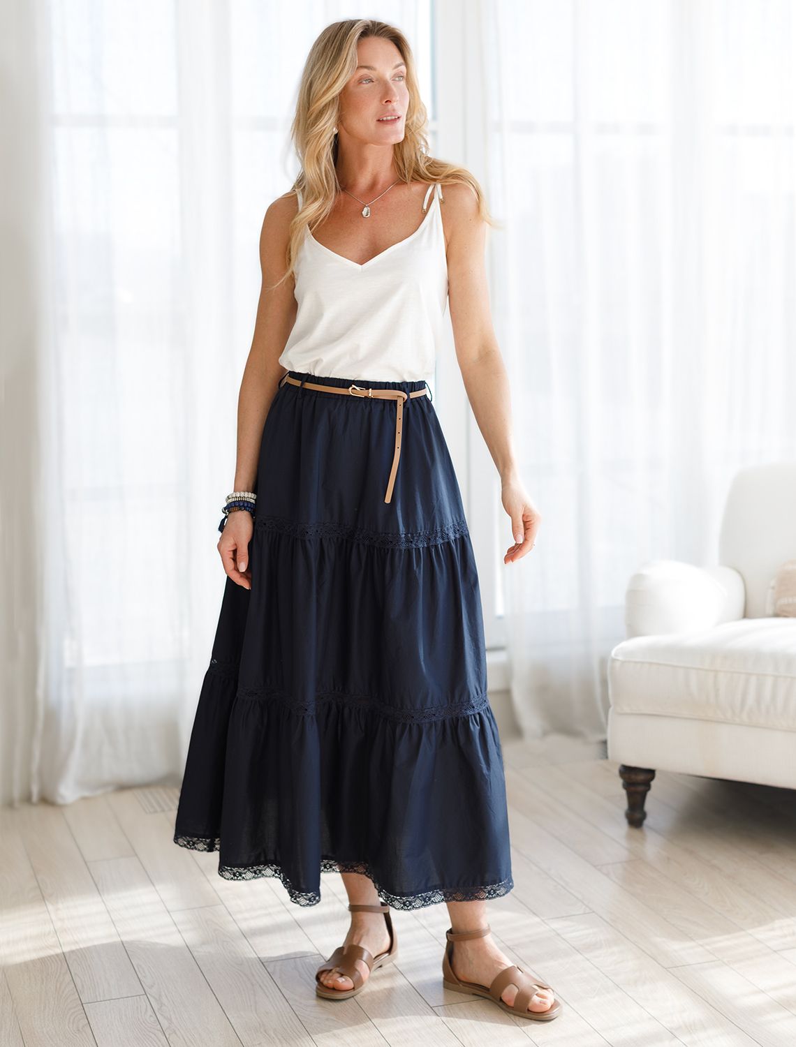 Красивый летний топ молочного цвета с V-вырезом на регулируемых бретельках-завязках выполнен из фактурного трикотажа плотностью 140 Г/м2. Текстура материала создает интересный эффект с характерными горизонтальными "штрихами", создаваемыми использованием нитей разной плотности, что делает повседненый топ особенно привлекательным, при этом он идеален для жаркой летней погоды и позволяет чувствовать легкость и удобство.Тонкие лямки с завязками дают возможность свободно регулировать длину, обеспечивая комфортную и индивидуальный посадку по фигуре. Модель подчеркивает женственные линии, гармонично вписываясь в любую летнюю гардеробную палитру. Представлены маленькие и большие размеры. С этим топом легко создать элегантный повседневный образ девушкам и женщинам любого возраста. Майка идеально подойдет как для работы, так и для деловых встреч, добавляя стиля в любой наряд, можно носить как самостоятельную вещь, без верхнего слоя. Нарядный топ станет универсальным решением для любого повседневного или праздничного образа, сочетающего эффектность и практичность.