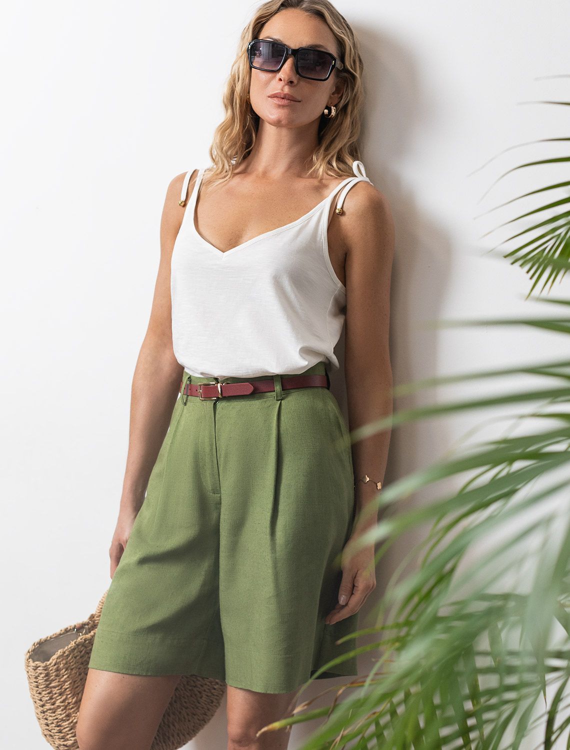 Топ с V-вырезом на регулируемых бретелях-завязках из фактурного 100% хлопка флам D43.235 молочный