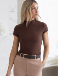 Топ с закрытым декольте из хлопка с эластаном в рубчик с матовым покрытием металлик