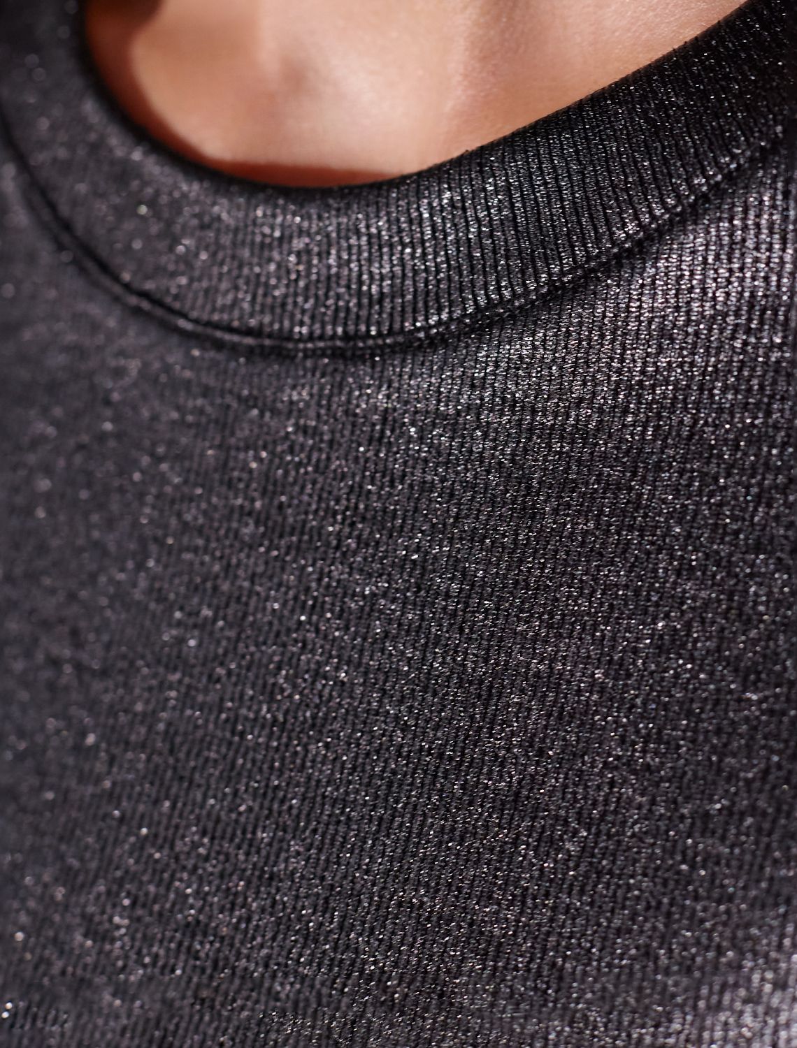 Топ с закрытым декольте из хлопка с эластаном в рубчик с матовым покрытием металлик D43.227 черный