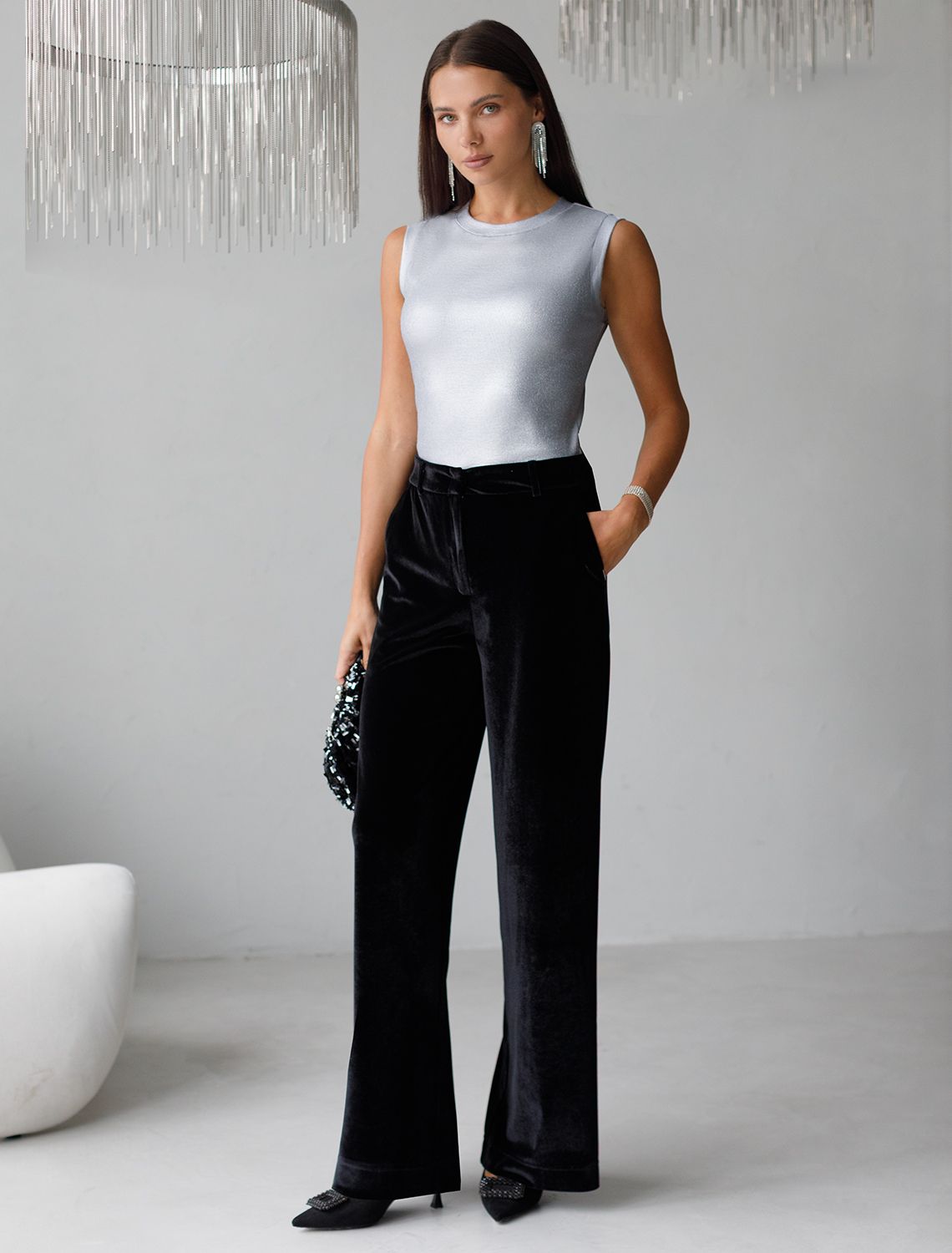Трендовый матовый металлизированный эффект создает сияющий блеск без излишней яркости — это делает топ нарядным и красивым как для праздничного события, так и для повседневной носки в комплекте с деловым костюмом или джинсами. Широкие лямки обеспечивают дополнительный комфорт в течение всего дня. Круглый ворот подчеркивает линию шеи, добавляя образу изысканности.