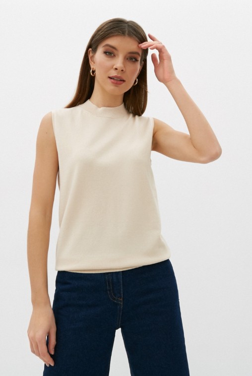 Топ без рукавов и круглым вырезом под горло. Модель свободно облегающего силуэта с фактурными низом.Топ изготовлен из приятного к телу трикотажа высокого качества. 70% вискоза, 30% полиамид