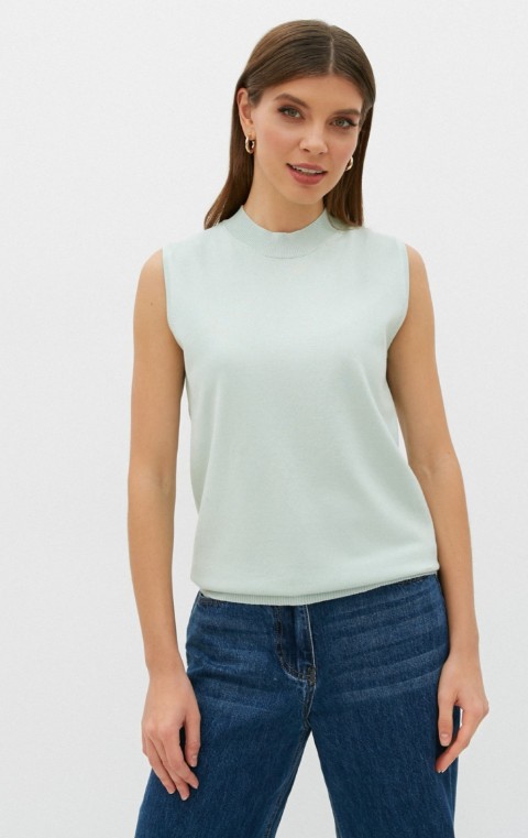 Топ без рукавов и круглым вырезом под горло. Модель свободно облегающего силуэта с фактурными низом.Топ изготовлен из приятного к телу трикотажа высокого качества. 70% вискоза, 30% полиамид