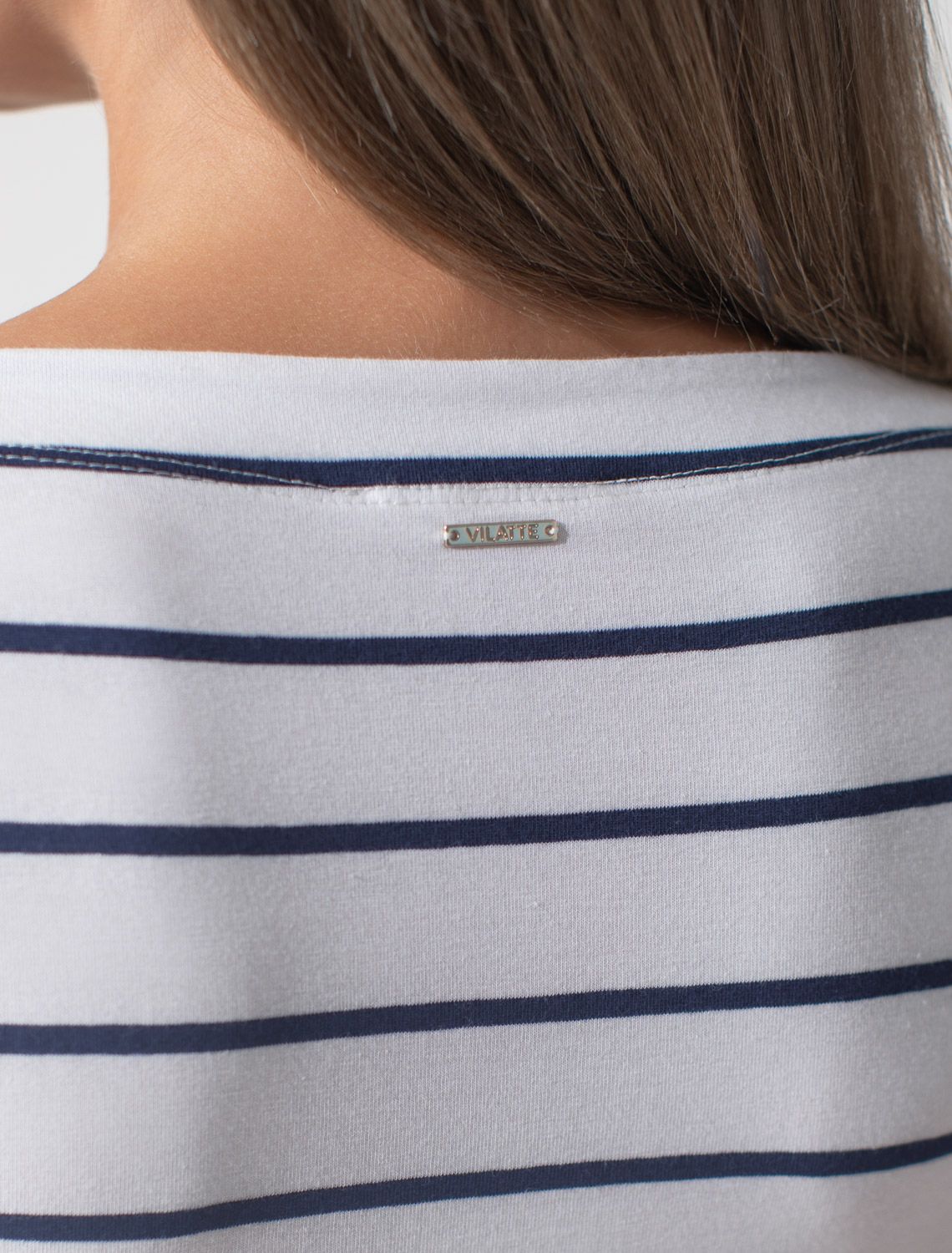 Топ в полоску с вырезом лодочка из премиального хлопка с эластаном D43.201 белый-т.синий