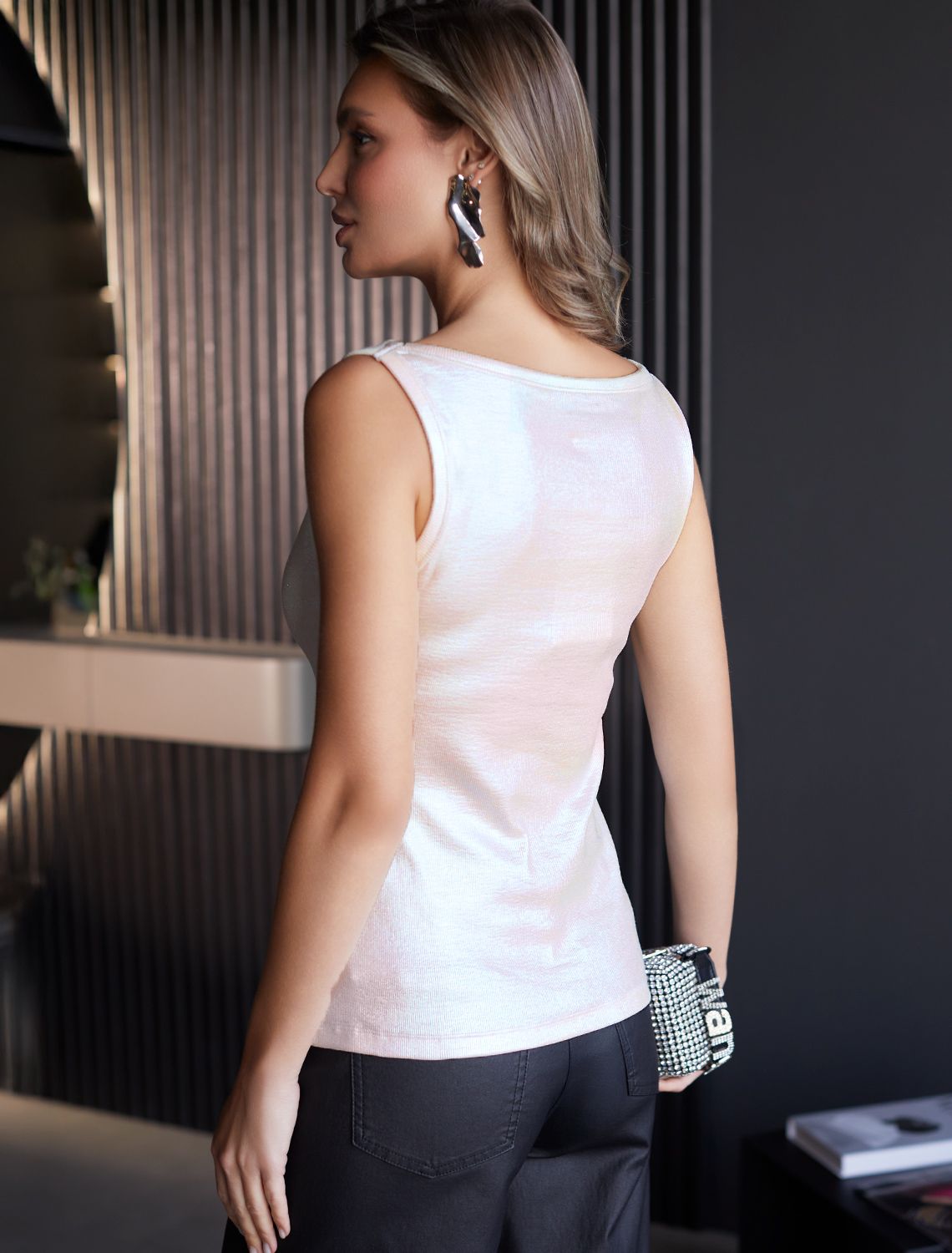 Топ в рубчик с широкими лямками с матовым покрытием металлик из хлопка с эластаном D43.229 перламутровый