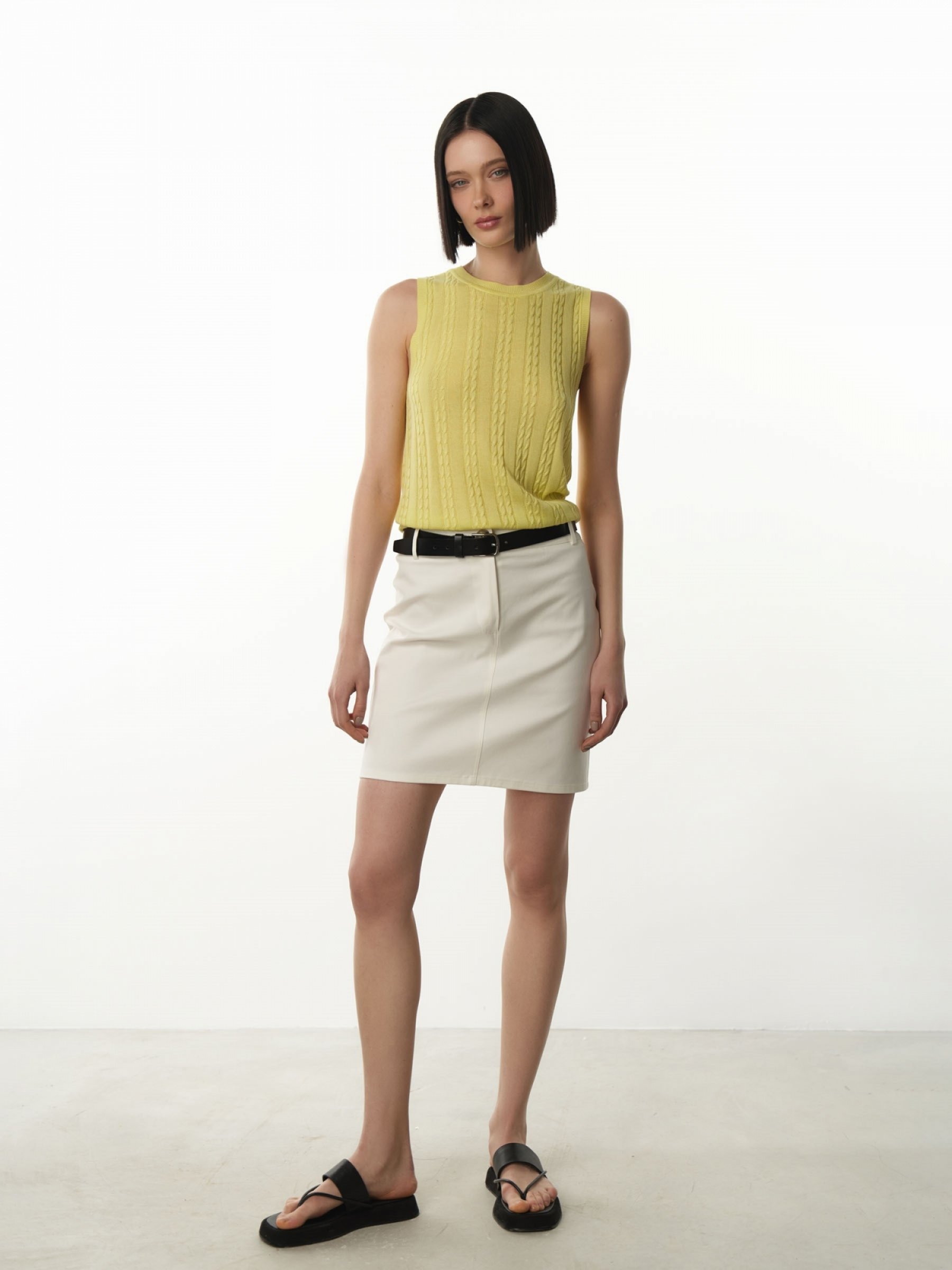 Укороченный топ из легкого фактурного трикотажа подчеркивает фигуру и создает женственный образ. Современная классика для ярких или спокойных луков. Материал – мягкий, приятный и простой в уходе трикотаж. Топ декорирован изящными вертикальными вязаными косами, которые визуально вытягивают силуэт. Круглая горловина, пройма и низ изделия отделаны резинкой в тон. Приятный желтый цвет ассоциируется с солнцем, теплом и обеспечит яркие эмоции. 70% вискоза, 30% нейлон