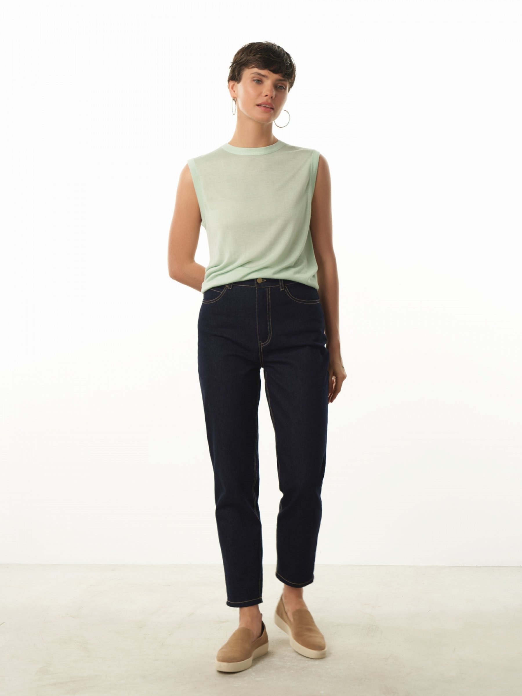 Топ классической длины полуприлегающего силуэта – расслабленный и лаконичный. Выполнен из легкого трикотажа на основе 100% вискозы. Круглая горловина и проймы декорированы гладкой резинкой в тон. Низ – фактурной резинкой также в тон. Модель выполнена в базовых и акцентных цветах, выбирайте под лук и настроение. 100% вискоза